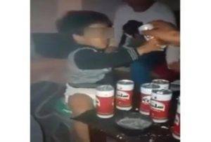 أظهر في الصور شخص يقوم بإرغام الطفل على تدخين سيجارة، حيث قام بإشعالها له، ومناولته الخمر، وبعد انتشاره عبر السوشيال ميديا، وسط إدانات من المستخدمين، تم القبض على خمسة أشخاص من بينهم امرأتان واحدة منهم أم للطفل.