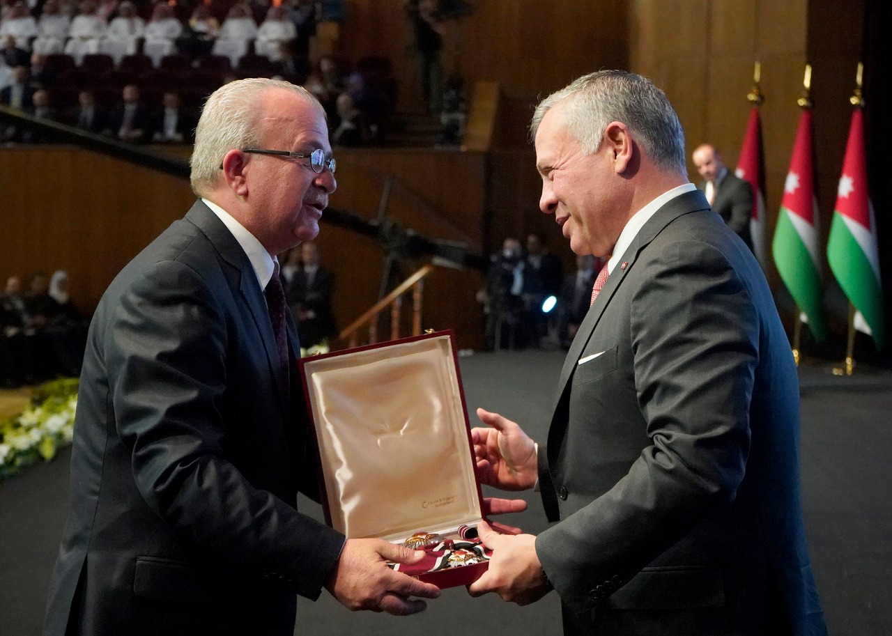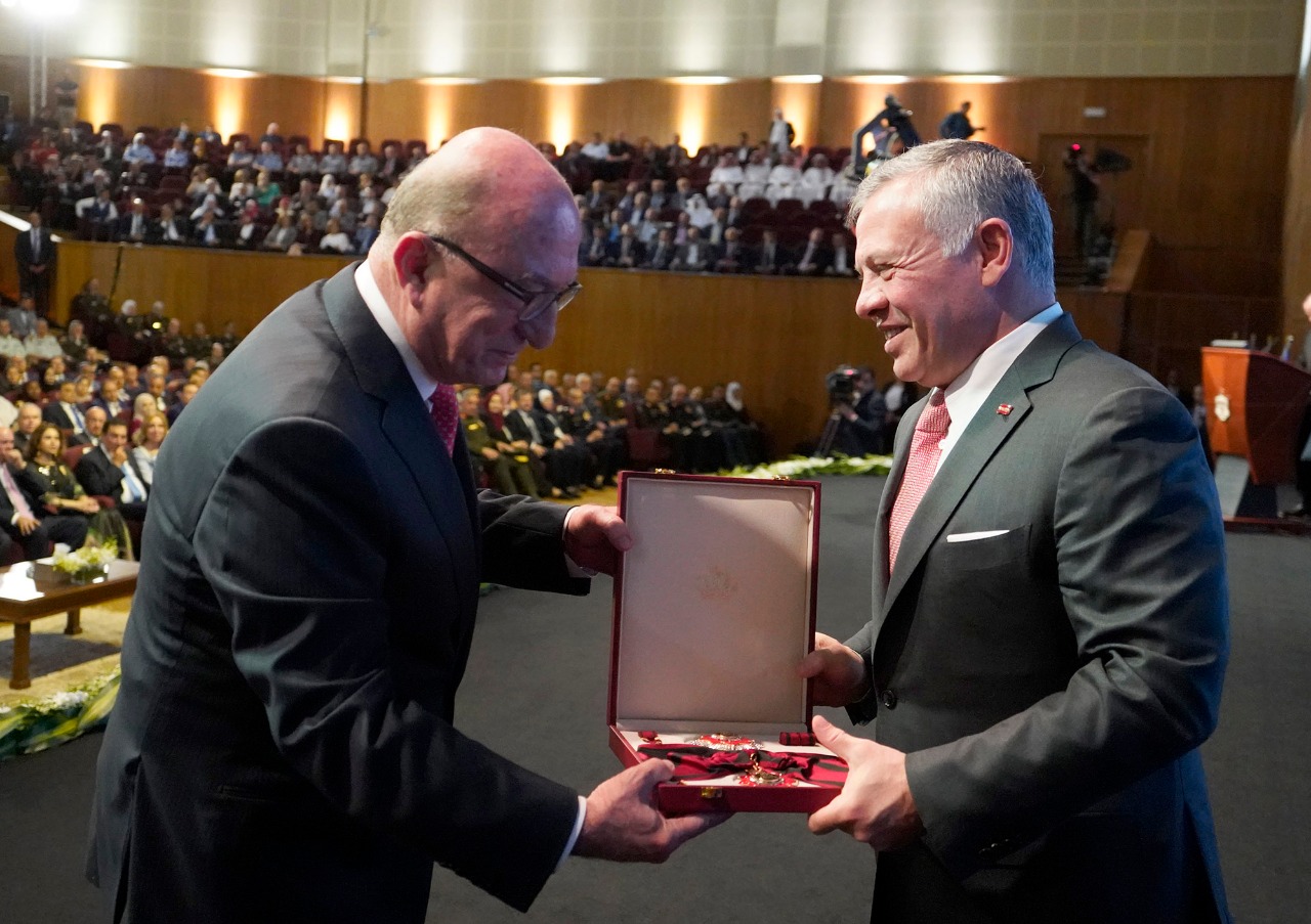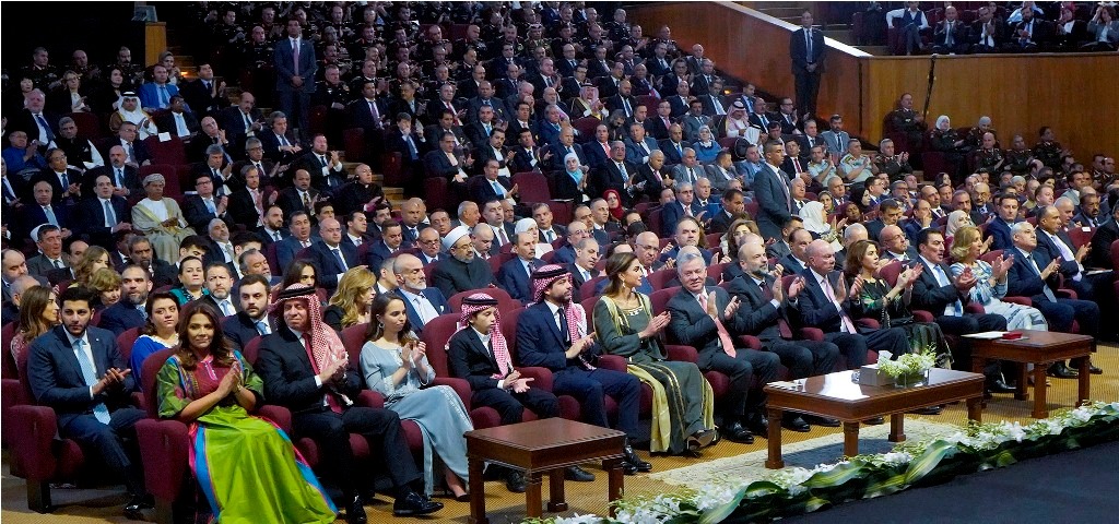 نيروز الاخبارية :رعى جلالة الملك عبدالله الثاني، اليوم السبت، بحضور جلالة الملكة رانيا العبدالله وسمو الأمير الحسين بن عبدالله الثاني ولي العهد، الاحتفال الوطني الكبير الذي أقيم في قصر الثقافة بمدينة الحسين للشباب بمناسبة عيد استقلال المملكة الثالث والسبعين.