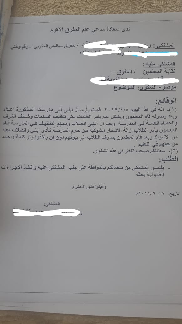 شكوى لدى مدعي عام المفرق بحق معلمين... تفاصيل