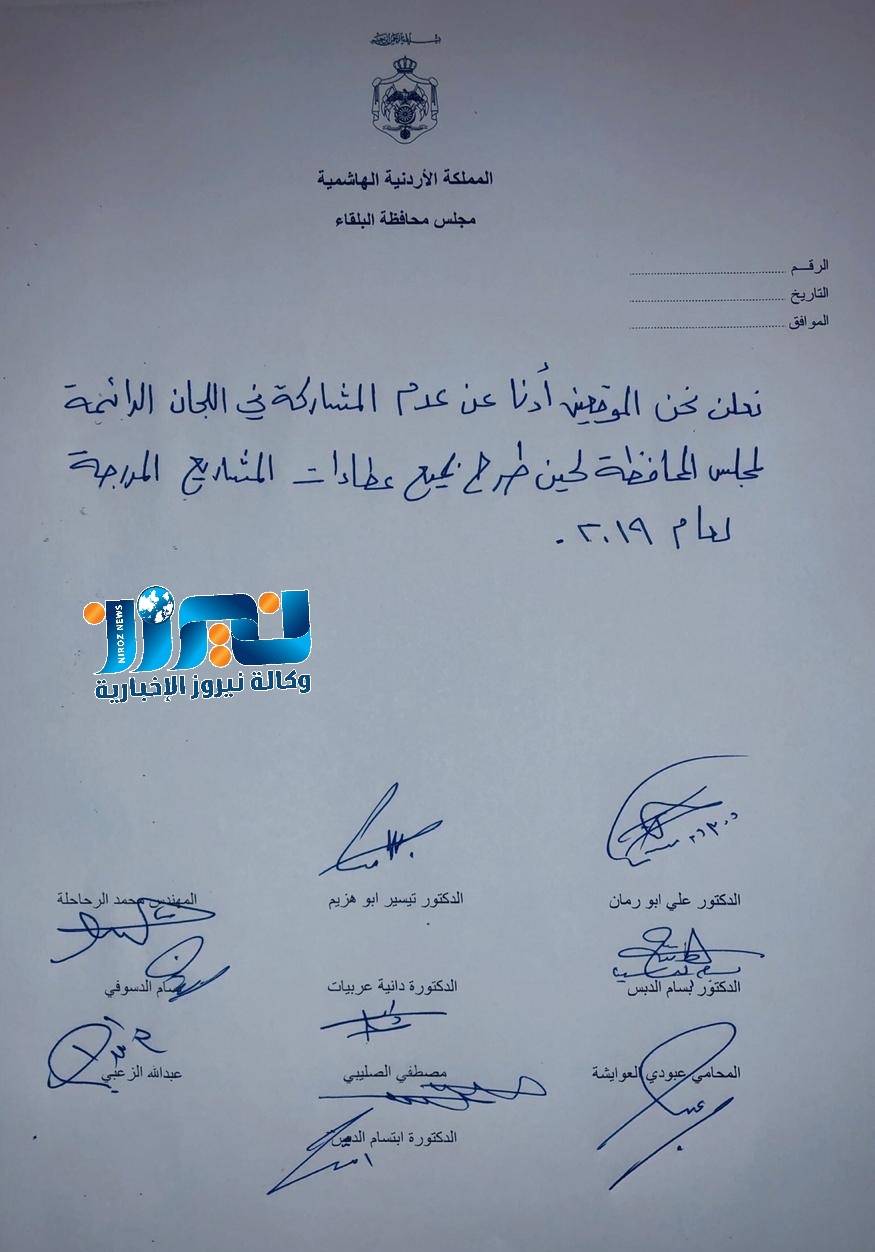 اعضاء من مجلس محافظة البلقاء يعلنون عدم المشاركة في اللجان الدائمة... وثيقة