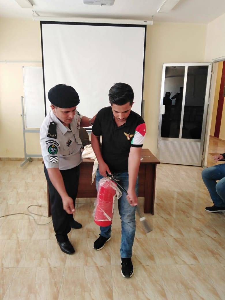 في محافظة الطفيلة اشتمل على تدريبهم بمواضيع تتعلق بالإسعافات الأولية كالإنعاش القلبي الرئوي وفتح المجاري التنفسية وكيفية التعامل مع ضربات الشمس والصعقات الكهربائية وكيفية التعامل المبكر مع الحرائق واستخدام الطفاية اليدوية .