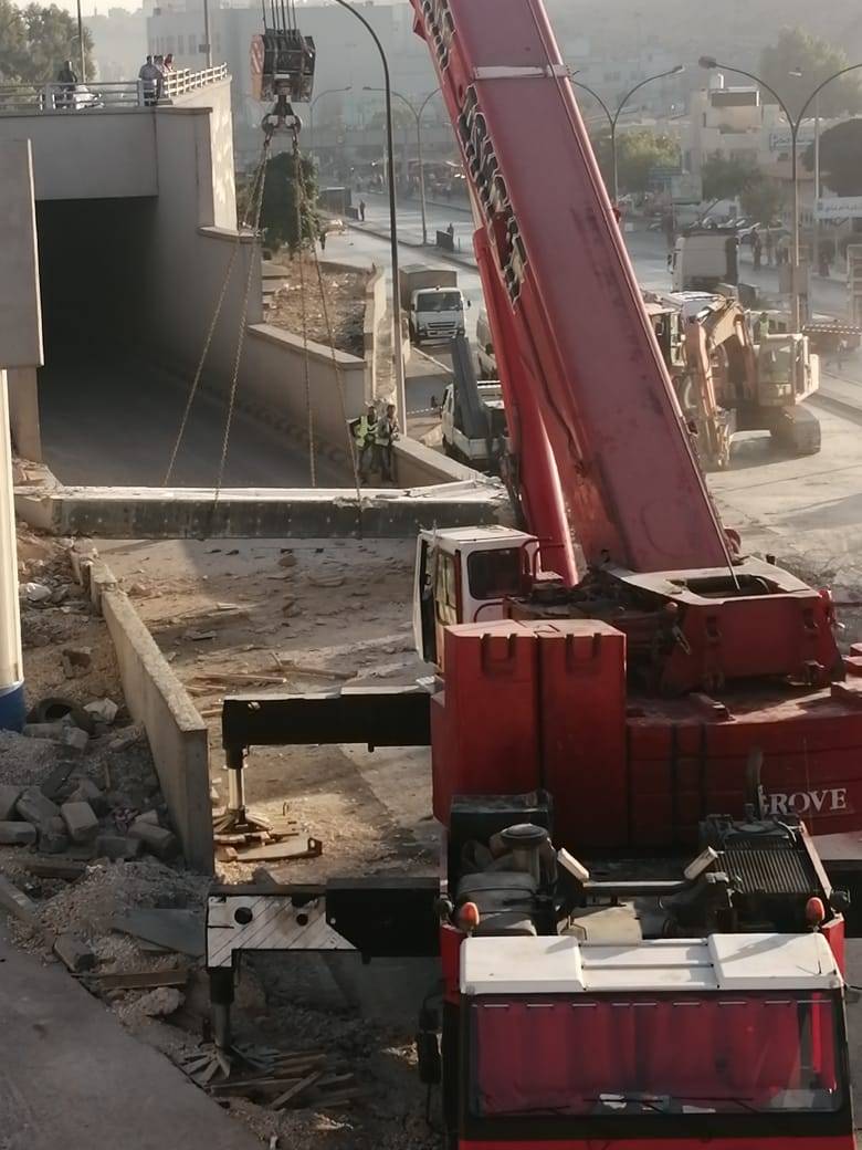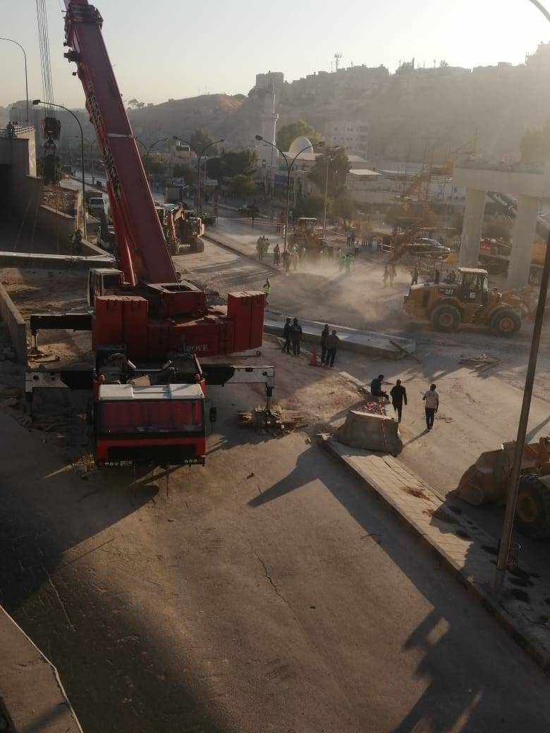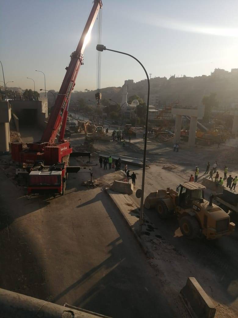 وأثناء تركيب الجسر الاسمنتي الثالث تم سقوطه على الشارع العام (شارع الجيش)