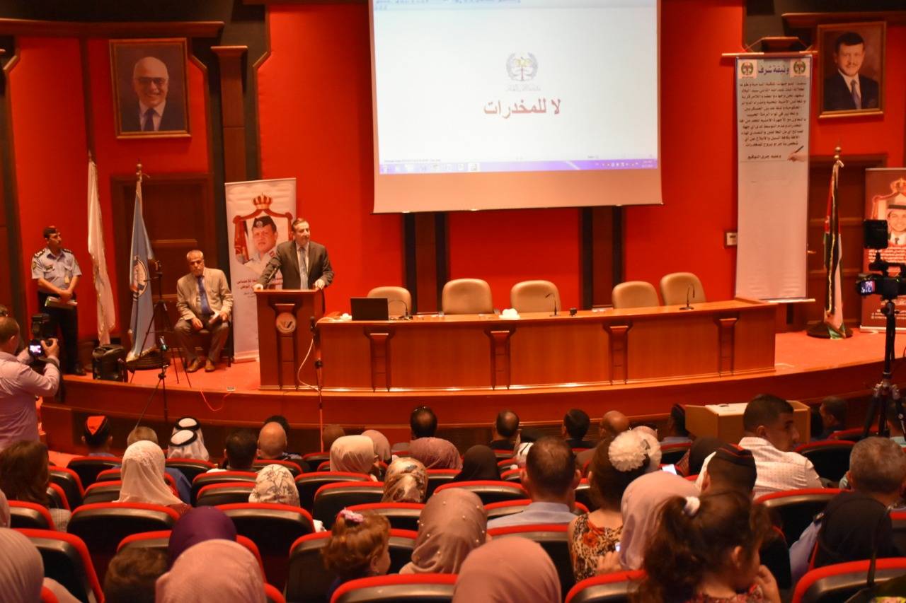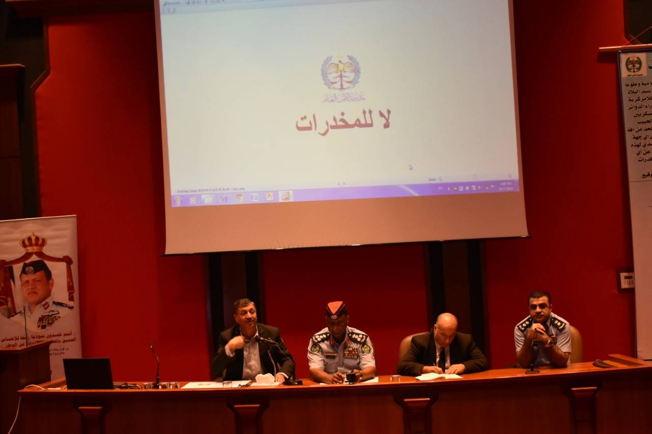 الرمثا- نيروز كتب رئيس التحرير المسؤول محمد ابوطبنجة  نظمت مديرية شرطة لواء الرمثا ندوة حوارية تحت عنوان المخدرات واثرها على المجتمع وبالتعاون مع مستشفى الملك المؤسس عبدالله الجامعي تحدث فيها رئيس الجامعة الدكتور صائب خريسات ومدير إدارة مكافحة المخدرات العميد أنور الطراونة وقائد أمن إقليم الشمال بالإنابة العميد ماهر الخالدي والناطق الإعلامي باسم مديرية الأمن المقدم عامر السرطاوي ومدير الأوقاف زياد الكساسبة وأكد الجميع على ضرورة التوعية من آفة المخدرات والعقاقير الخطرة في الاردن".