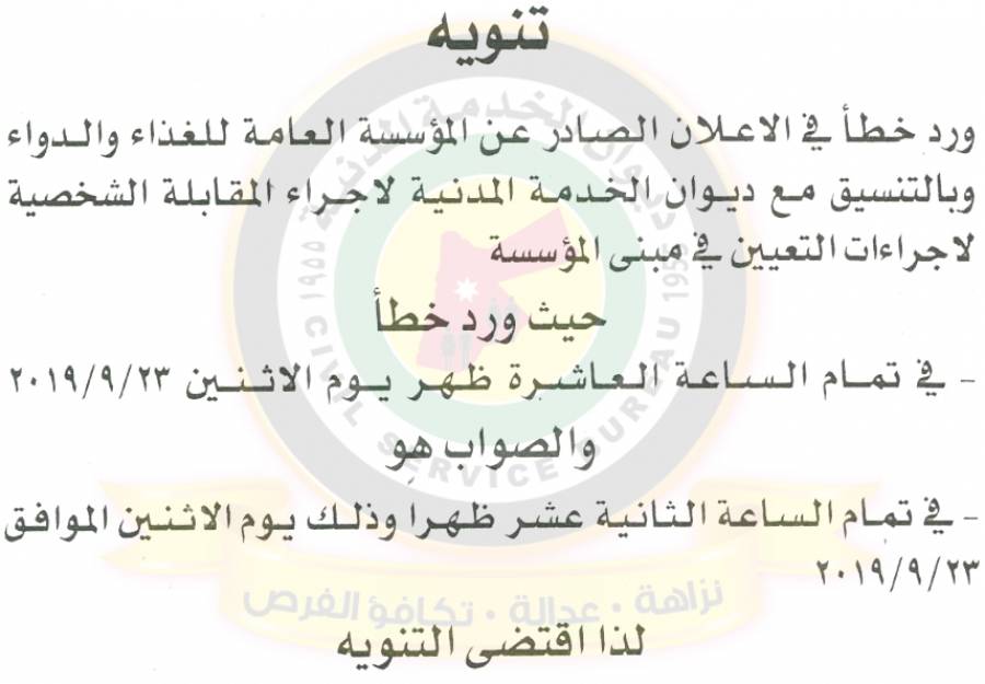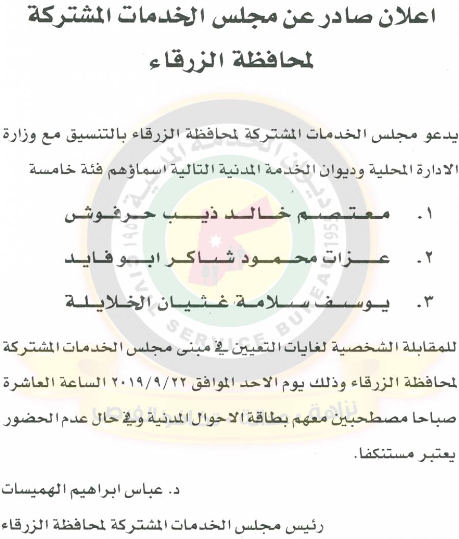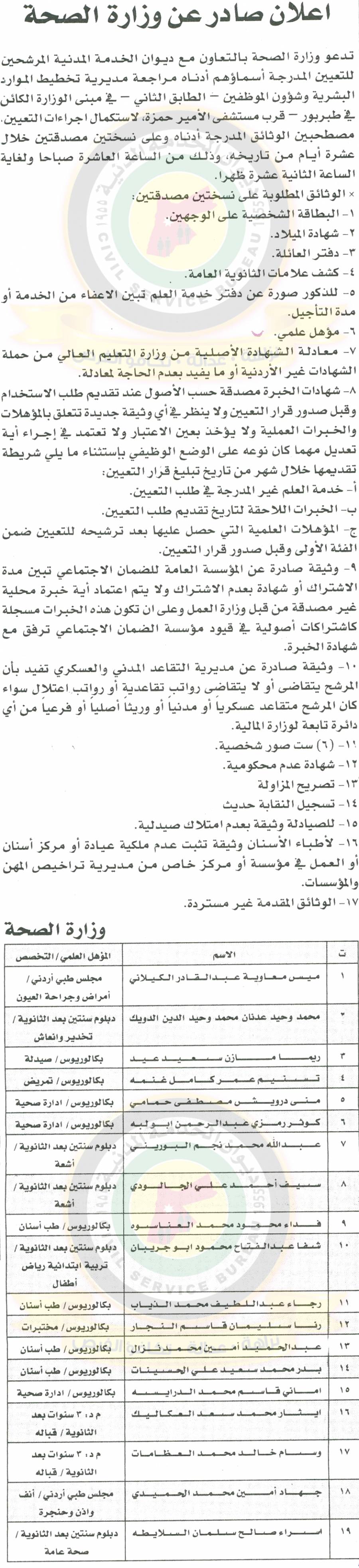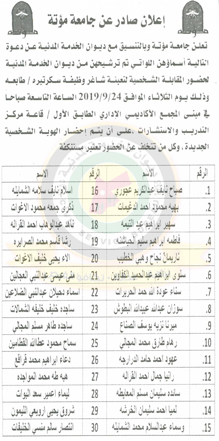 نيروز الاخبارية :دعا ديوان الخدمة المدنية بالتعاون مع مختلف الوزارات والمؤسسات الحكومية، التالية اسماؤهم لاجراء المقابلات الشخصية وعقد الامتحان التنافسي لغايات التعيين.