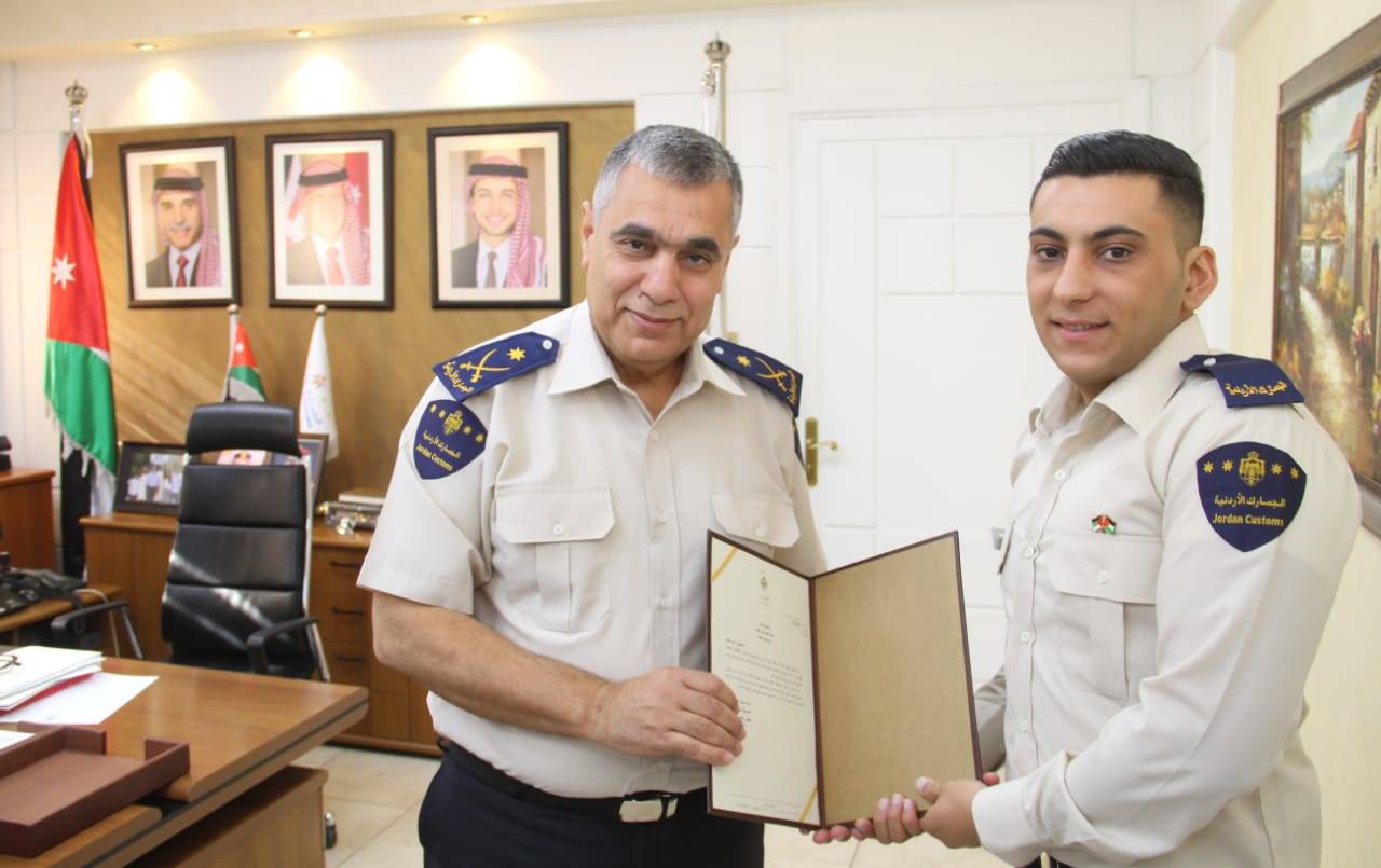 نيروز الاخبارية : كرم مدير عام الجمارك الاردنية اللواء الدكتور عبدالمجيد الرحامنة ثلاثة من منتسبي الجمارك الاردنية على جهودهم المميزة في الكشف عن قضايا التهريب الجمركية والتي تميزت بالكفاءة والفاعلية والفراسة، وقد شمل التكريم كل من وكيل اول جمارك ياسر الذيب وشرطي جمارك محمد عوض ورقيب أول جمارك بهاء صفوري.
