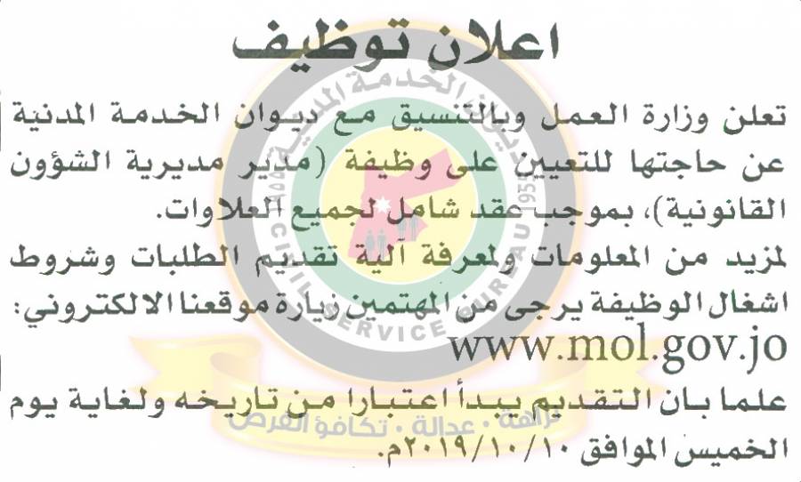 ويدعو ديوان الخدمة المدنية بالتنسيق مع هيئة الأوراق المالية, التالية أسماؤهم الذين انطبقت عليهم شروط الاعلان المنشور سابقا, التواجد يوم الأحد الموافق 6/10/2019 الساعة 12 ظهرا في مبنى ديوان الخدمة المدنية الكائن في طبربور- شارع الاقصى وذلك لحضور الامتحان التنافسي الالكتروني كما هو موضح أدناه .