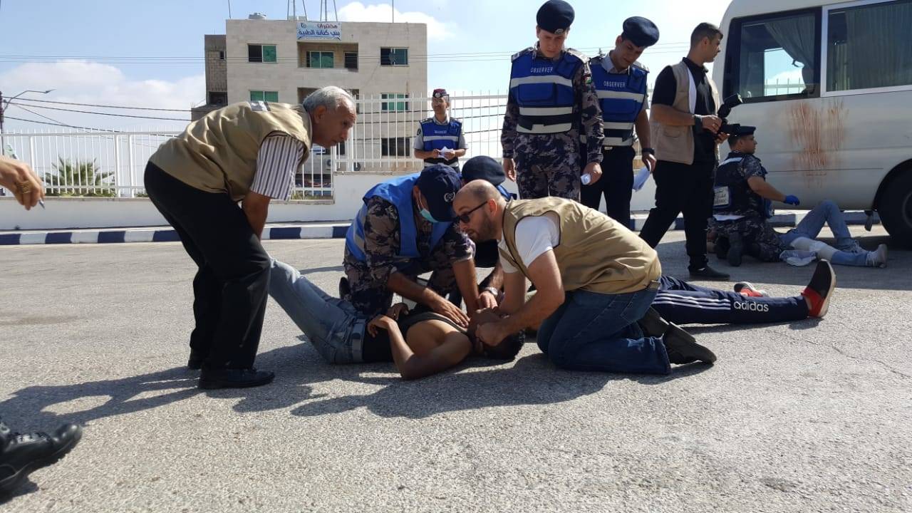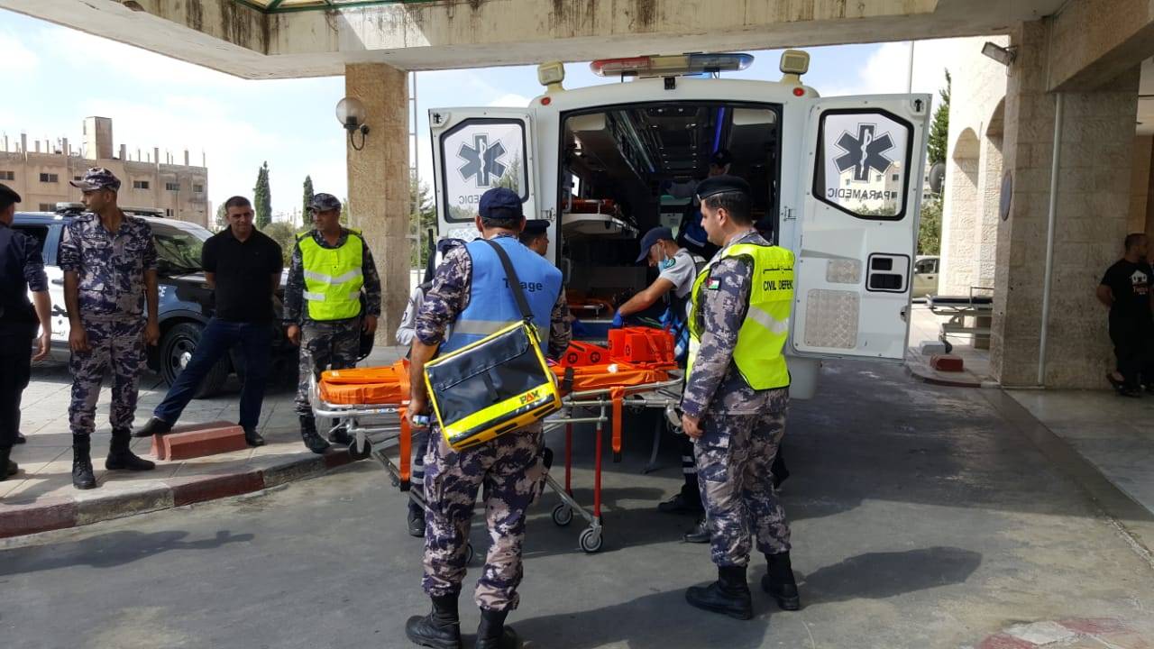 وقامت كوادر الإسعاف في مديرية دفاع مدني شرق إربد  بالتعامل مع  الإصابات من حيث تصنيفها وتقديم الإسعافات الأولية اللازمة لها