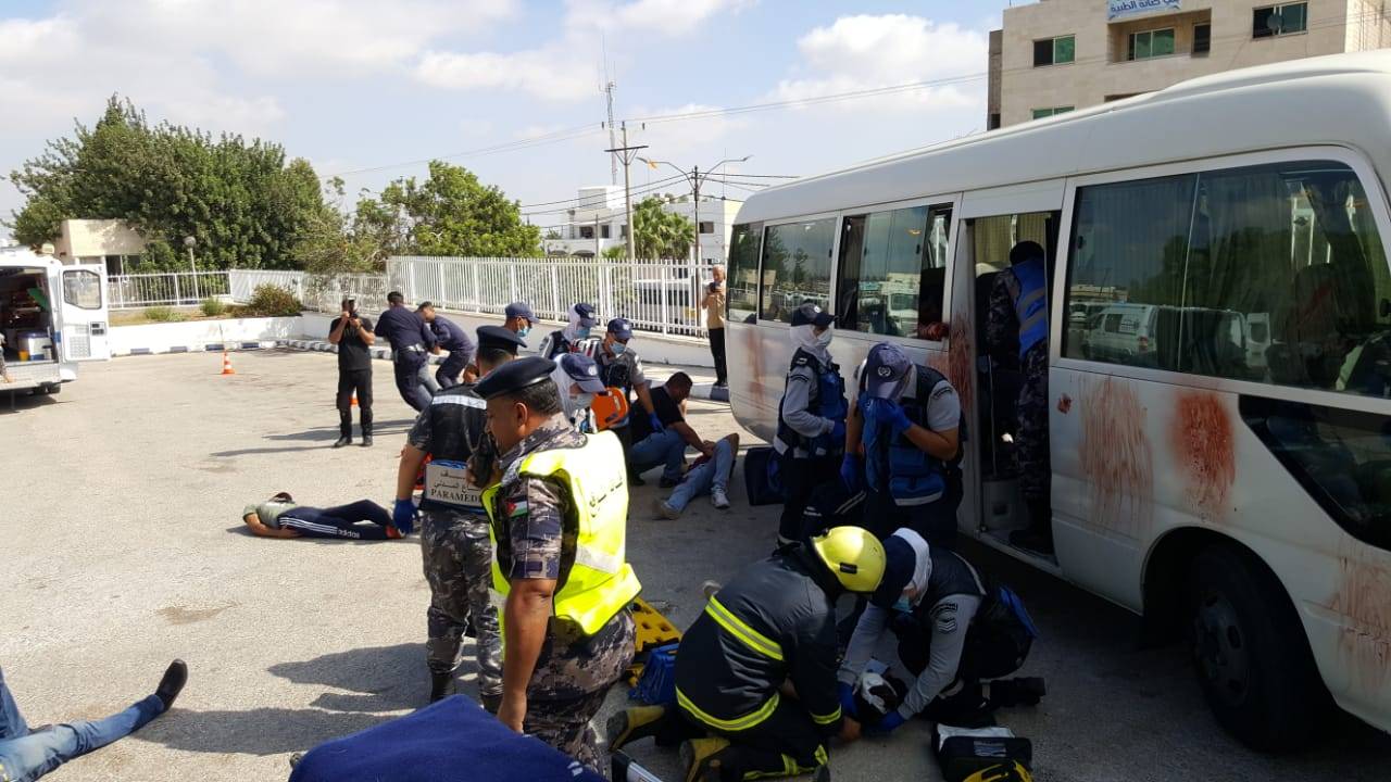 الدفاع المدني وبالتعاون مع وزارة الصحة والمكتب الألماني الفدرالي ينفذ تمريناً لحادث وهمي مفترض في محافظة اربد... صور
