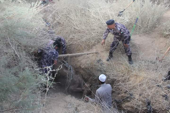 الدفاع المدني ينقذ جمل سقط داخل حفرة في الحسا... صور