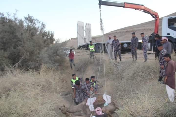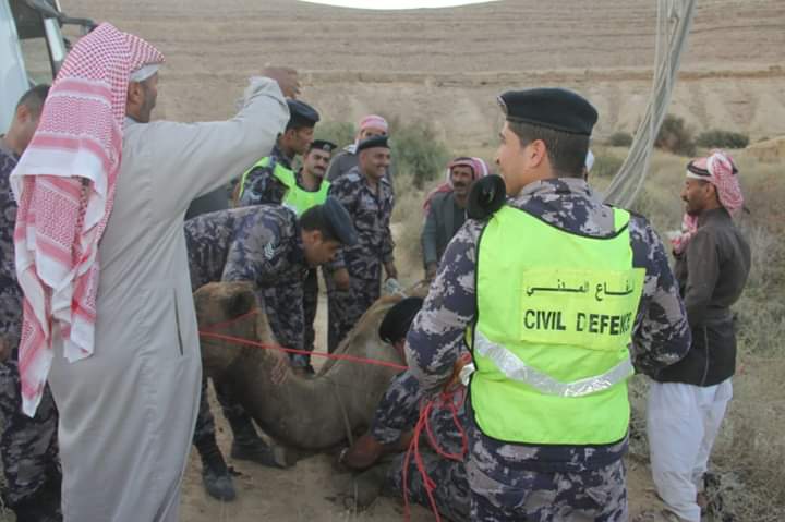وقالت إدارة الإعلام أن فرق الانقاذ عملت على إخراج الجمل باستخدام المعدات الخاصة لمثل هذه الحوادث دون أن يصاب بأي أذى .