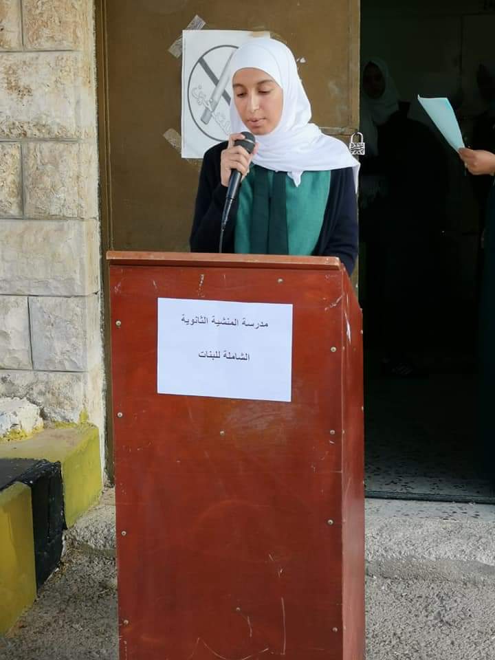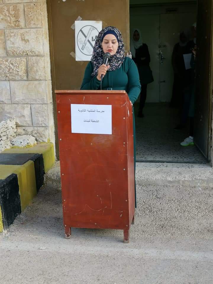 وبهذه المناسبة هنأت مديرة المدرسة زهور شديفات معلمي ومعلمات المملكه بمناسبة يوم المعلم وبمناسبة نيلهم حقوقهم وتمنت على المعلمين والمعلمات بأن يكونوا على قدرٍ عالٍ من المسؤولية متسلحين بالجد والعطاء.