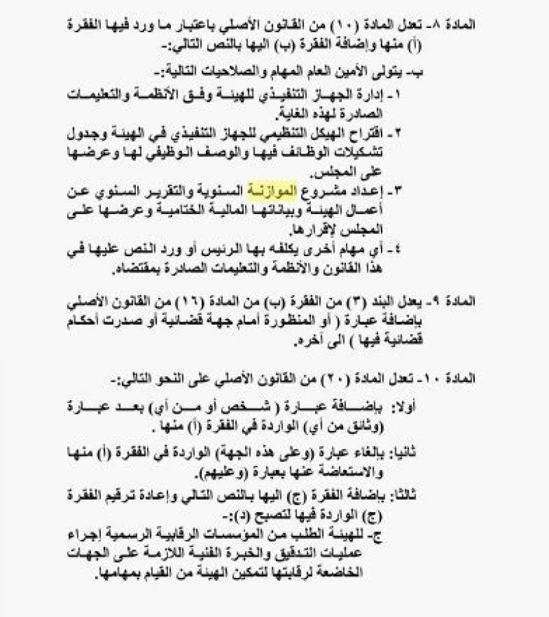 وبذلك فإن القانون المعدل ادناه قد دخل حيز التنفيذ اعتبارا من اليوم الاربعاء: