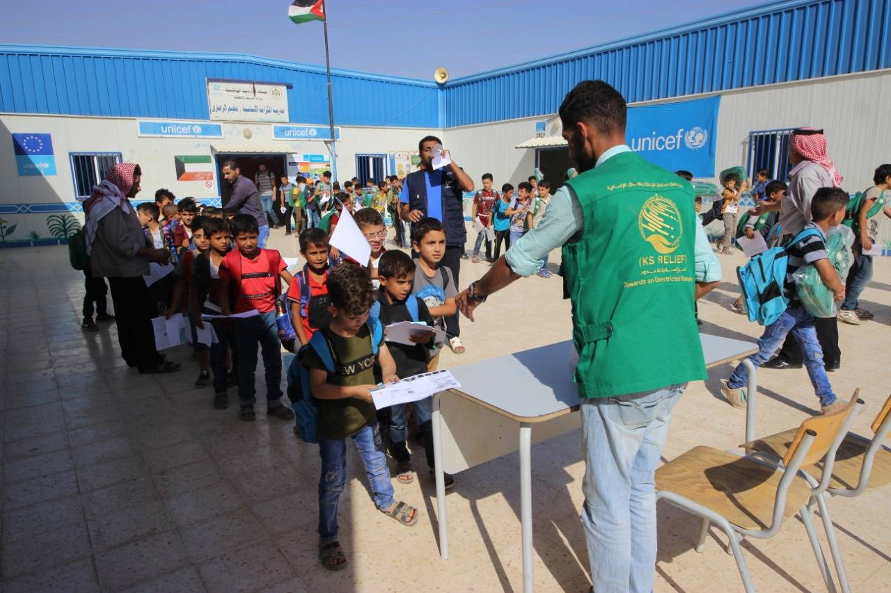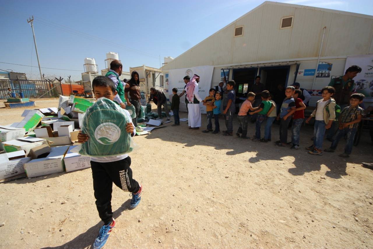 نيروز الاخبارية : يواصل مركز الملك سلمان للإغاثة والأعمال الإنسانية توزيع الحقائب المدرسية والأدوات القرطاسية على الطلاب والطالبات من أبناء اللاجئين السوريين في مخيم الزعتري واصلا لمحطته الثالثة ، حيث بلغ عدد المستفيدين من التوزيع (3822) طالباً وطالبة موزعين على (8 ) مدارس .