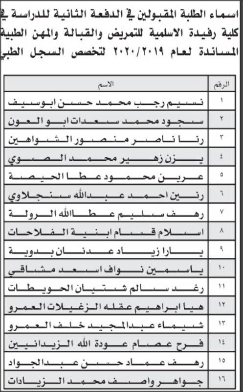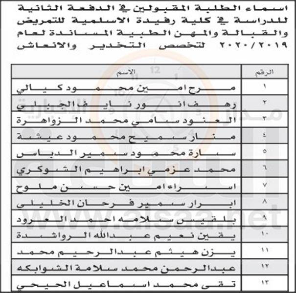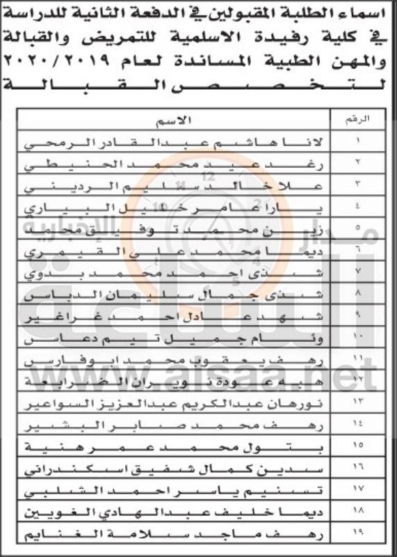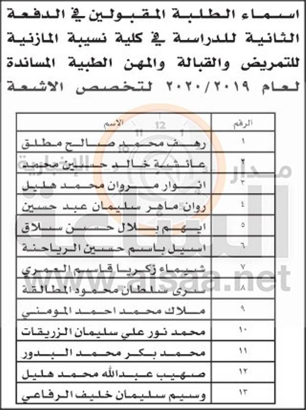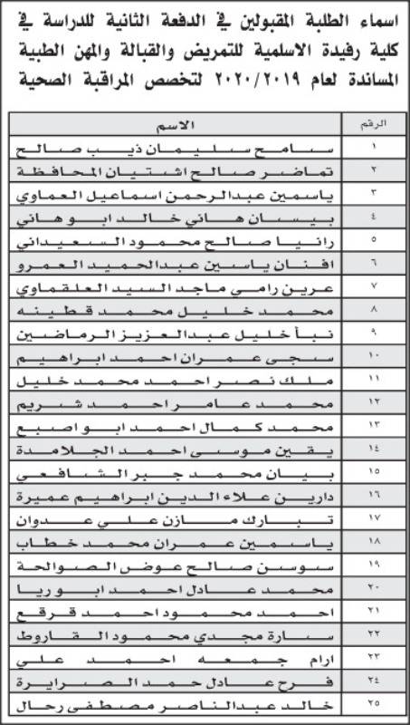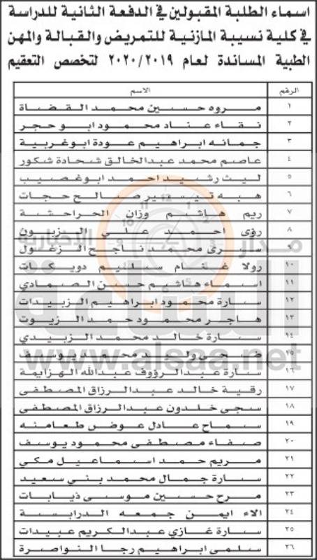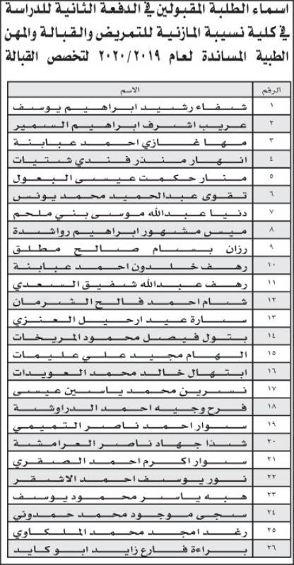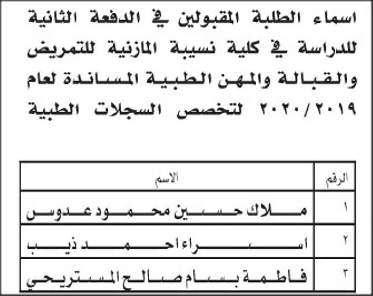 إقرأ أيضاً: إعلان الدفعة الأولى من المقبولين في كليات التمريض والقبالة والمهن الطبية المساندة (أسماء)