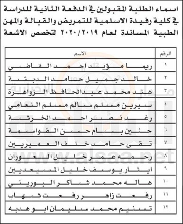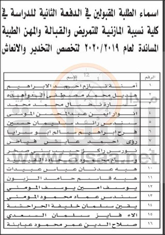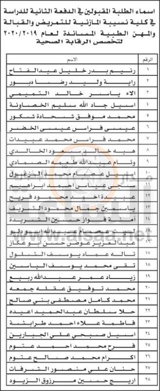 نيروز الاخبارية :أعلنت وزارة الصحة أسماء الدفعة الثانية من المقبولين في كليات التمريض والقبالة والمهن الطبية المساندة التابعة للوزارة للعام الدراسي 2019 / 2020.