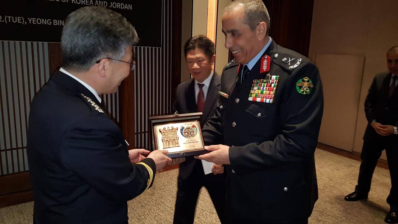 واستقبل المدير العام للشرطة  الكوريه اللواء مين جاب ريونج مدير الامن العام اللواء فاضل الحمود حيث تباحثا سبل تعزيز التعاون الشرطي والامني بين البلدين الصديقين في المجالات التدريبية وبناء القدرات ، ونقل الخبرات والتجارب الشرطية والتكنولوجيا الحديثة خاصة تجربة الخدمات الشرطية الذكية ، وفتح آفاق جديدة لأطر التعاون بين البلدين .