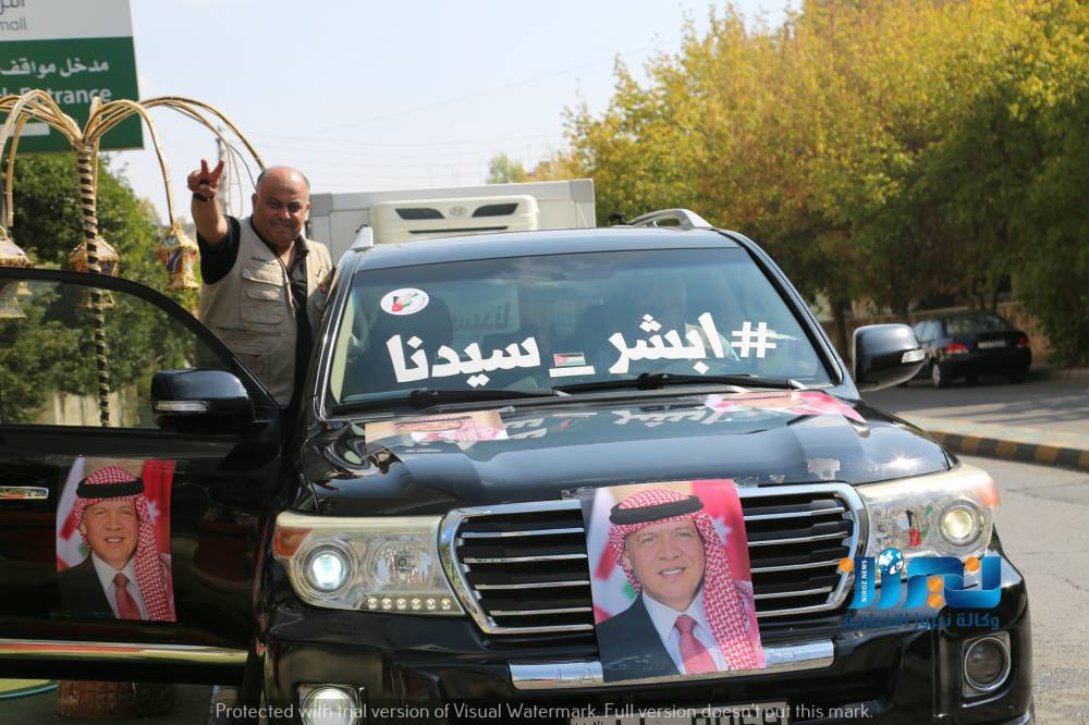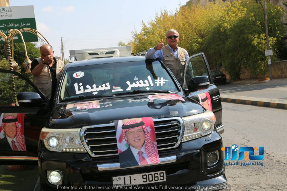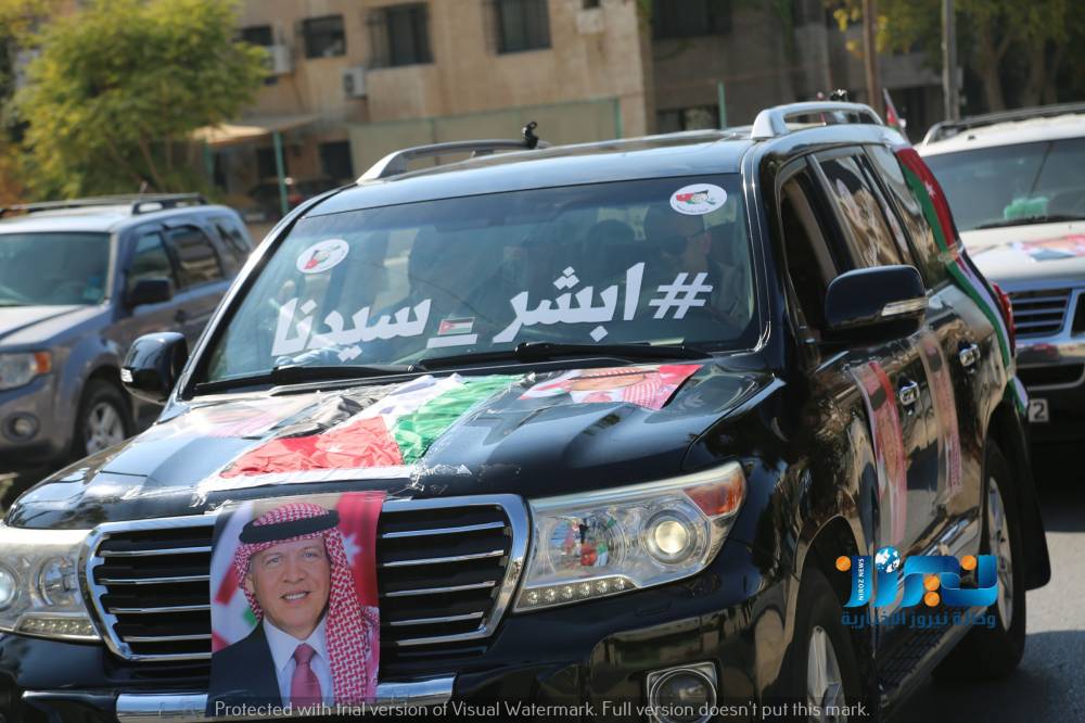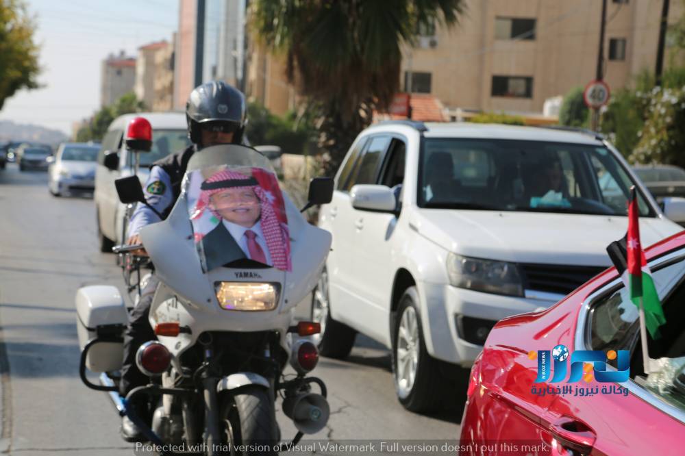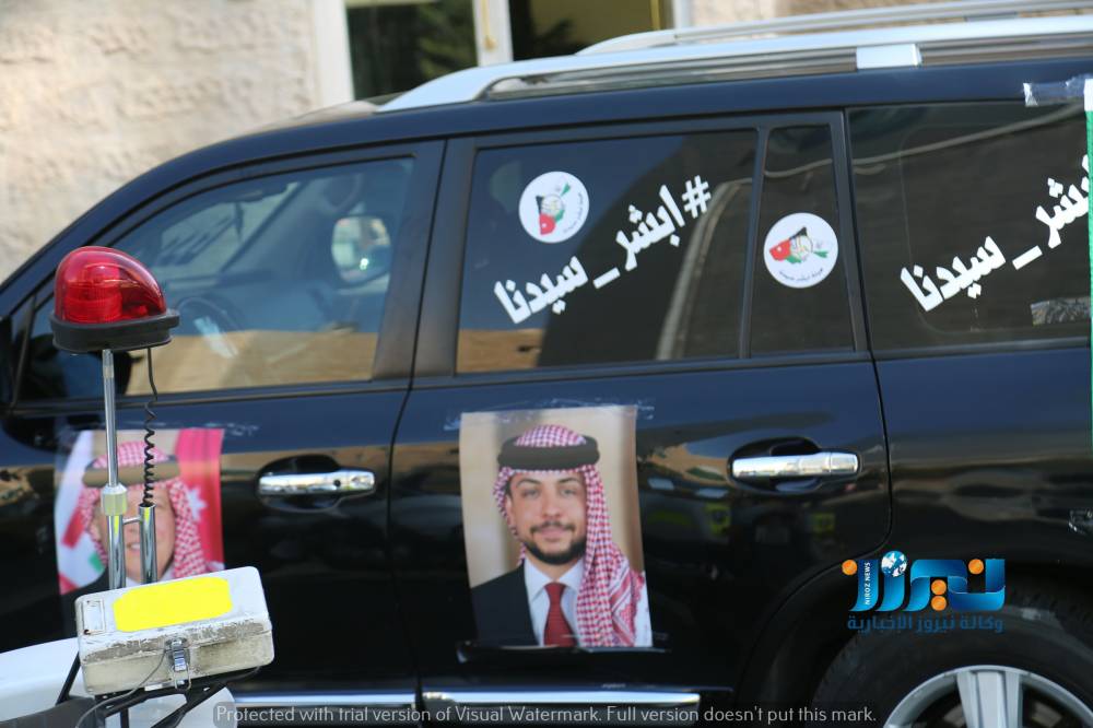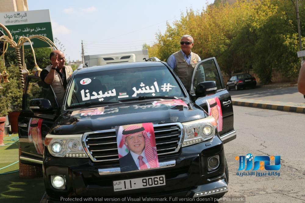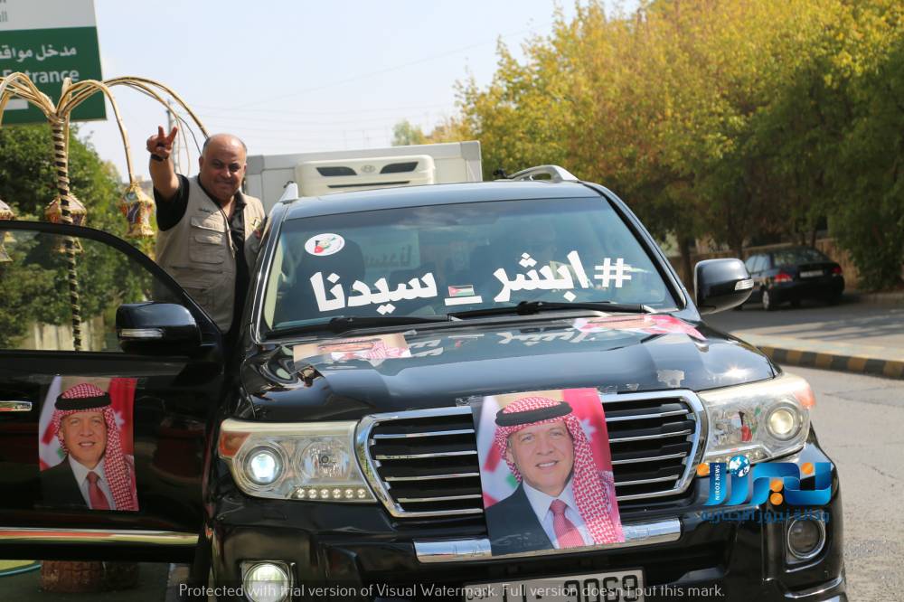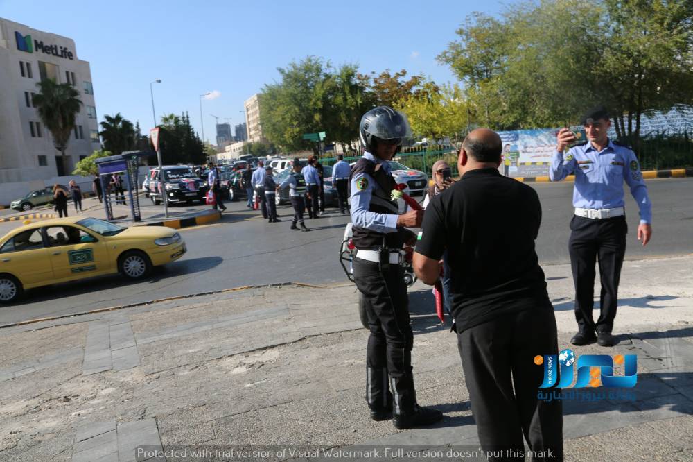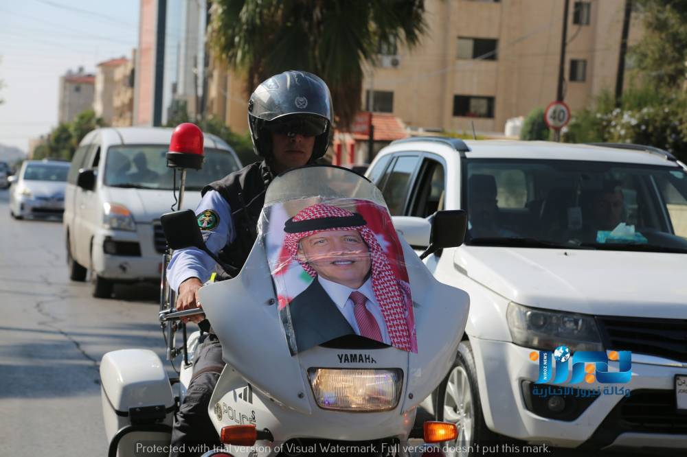 حيث انطلقت المبادرة بسيارات مزينه بإعلام الأردن وصور جلاله الملك بحوله ميدانية بمختلف مناطق العاصمه عمان شملت مرتبات السير والدوريات الخارجية.