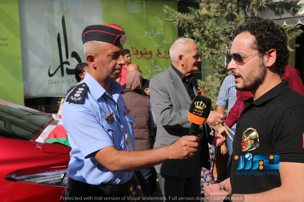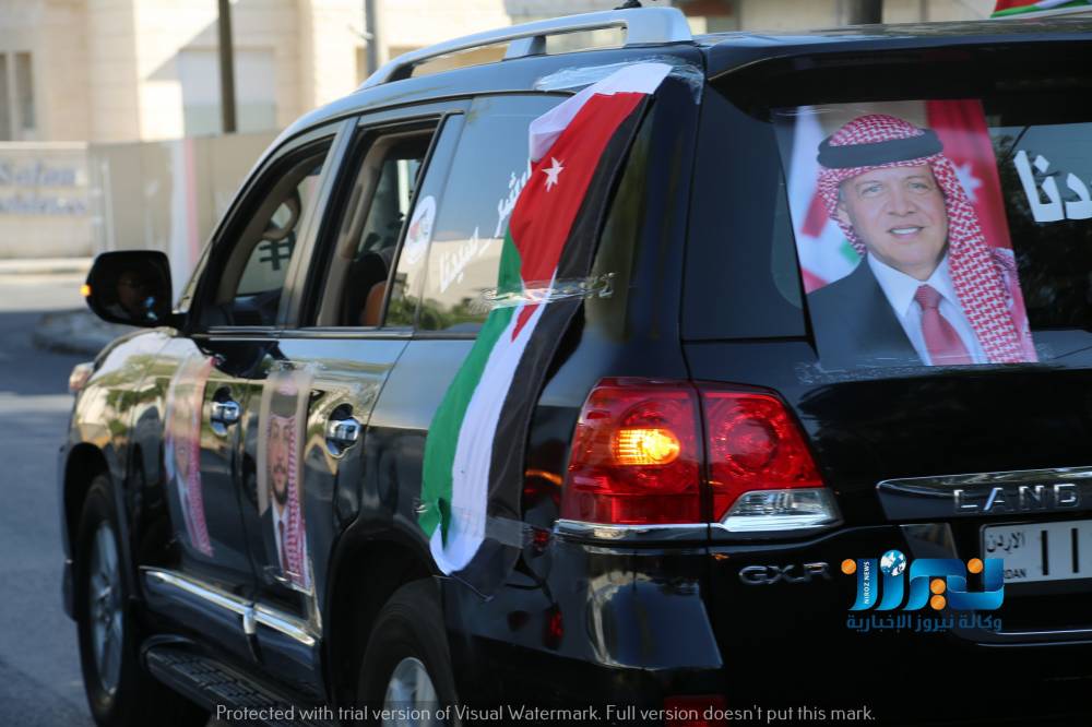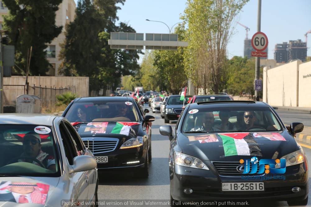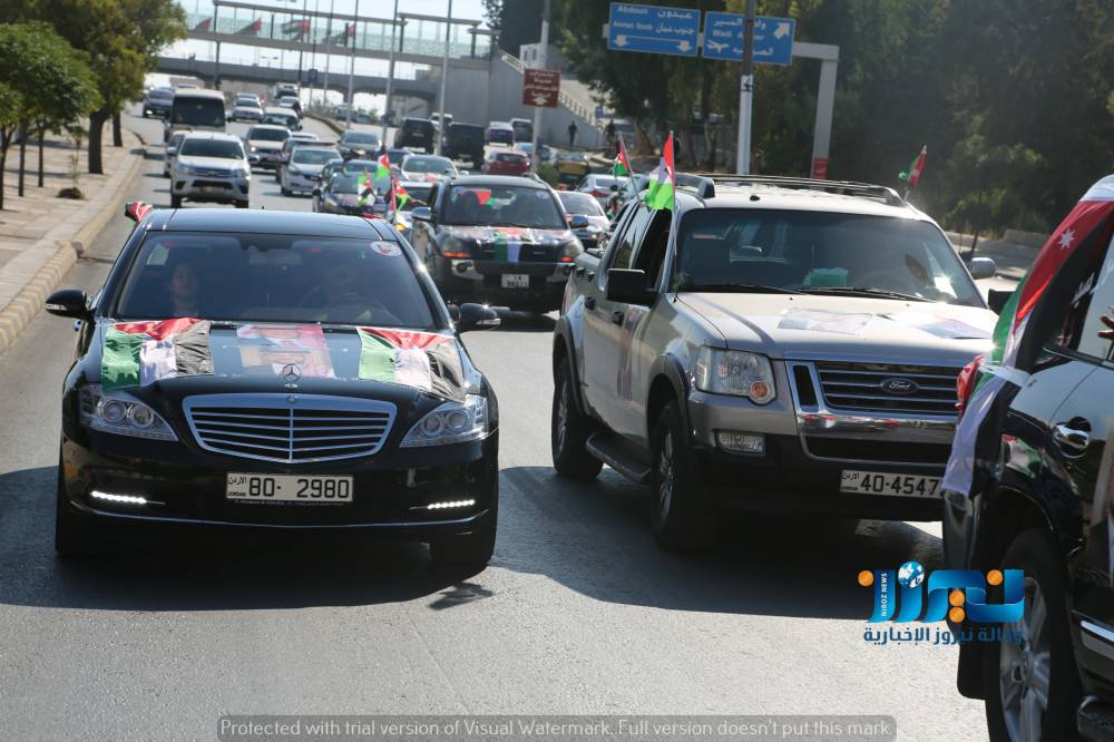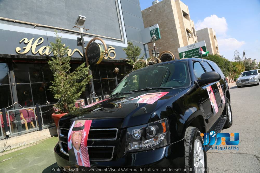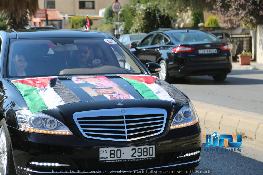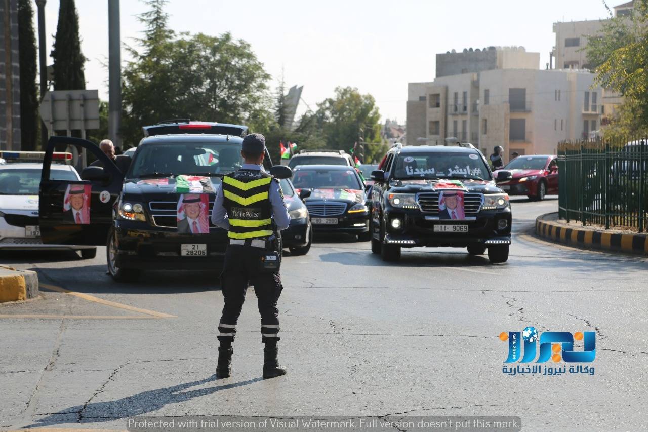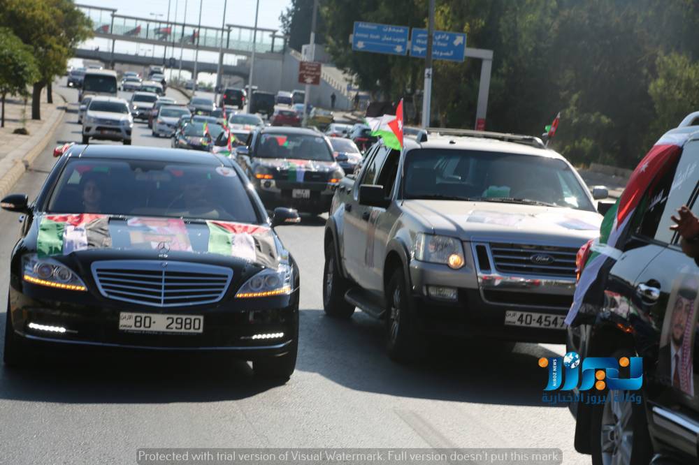 حيث انطلقت المبادرة بسيارات مزينه بإعلام الأردن وصور جلاله الملك بحوله ميدانية بمختلف مناطق العاصمه عمان شملت مرتبات السير والدوريات الخارجية.