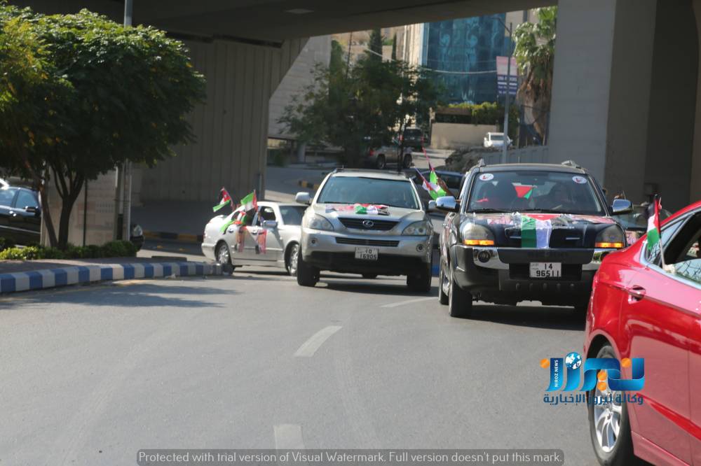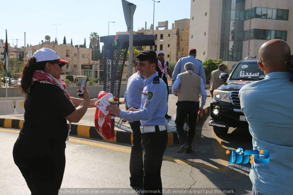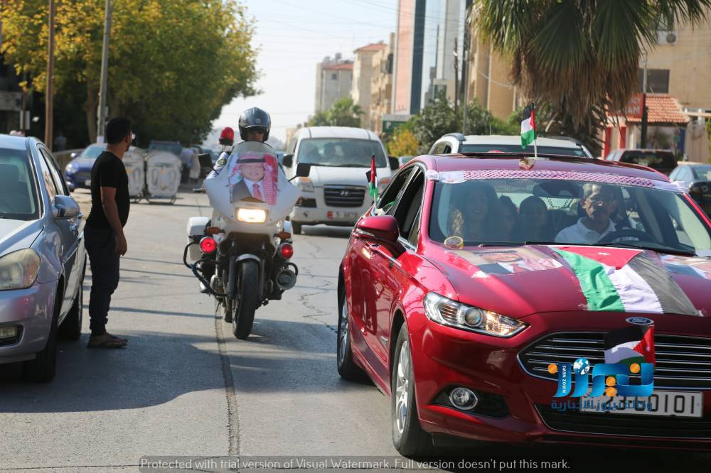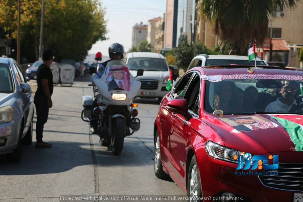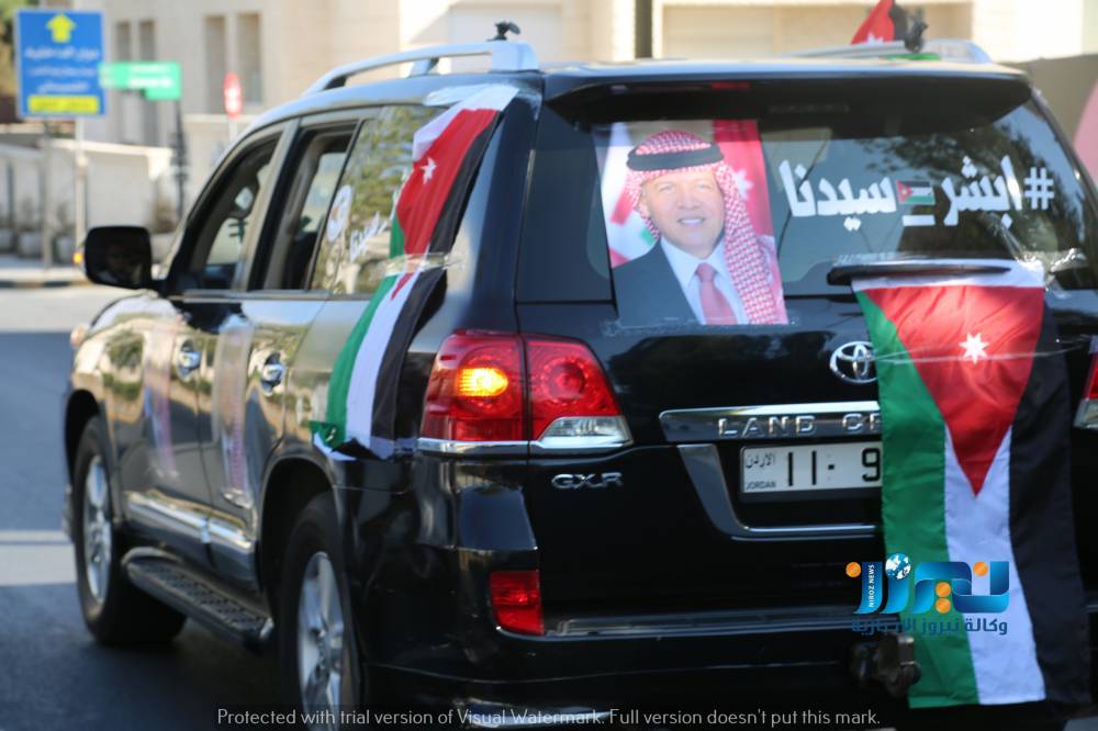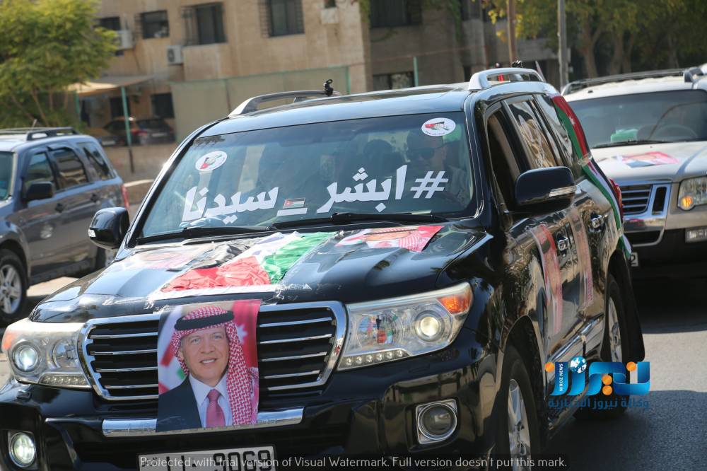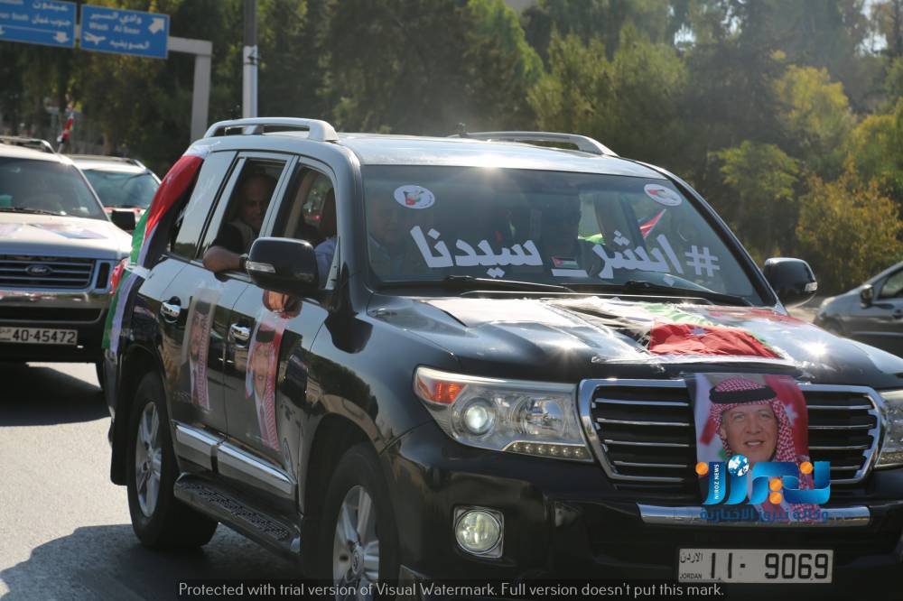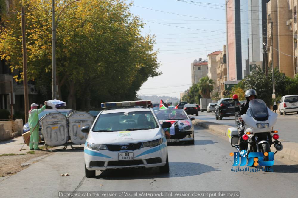 حيث انطلقت المبادرة بسيارات مزينه بإعلام الأردن وصور جلاله الملك بحوله ميدانية بمختلف مناطق العاصمه عمان شملت مرتبات السير والدوريات الخارجية.
