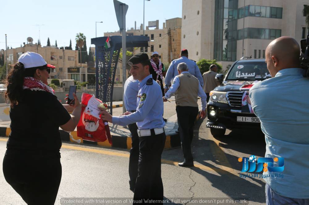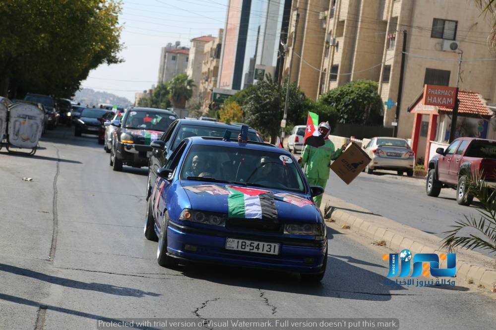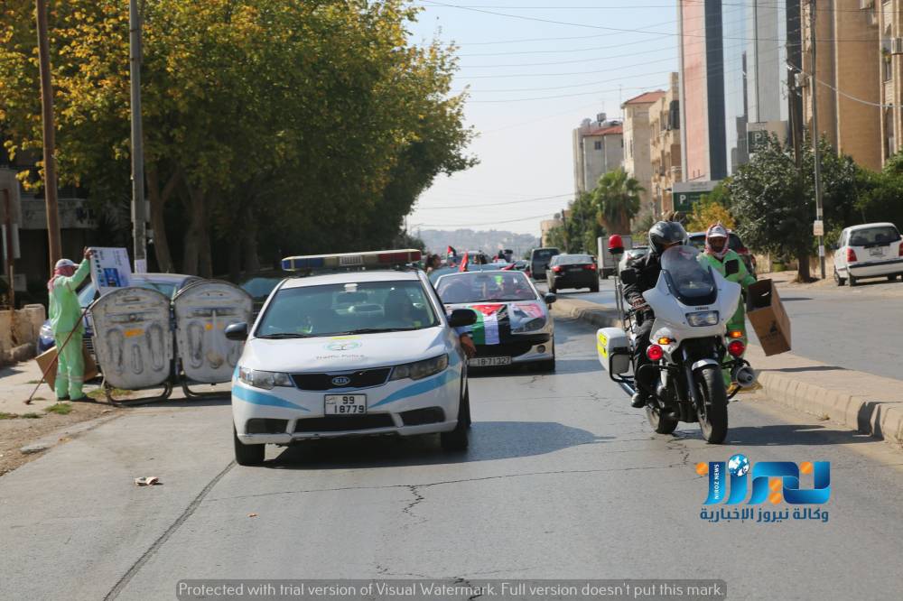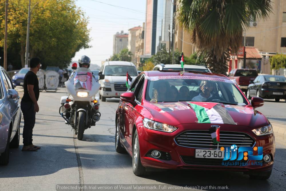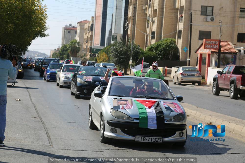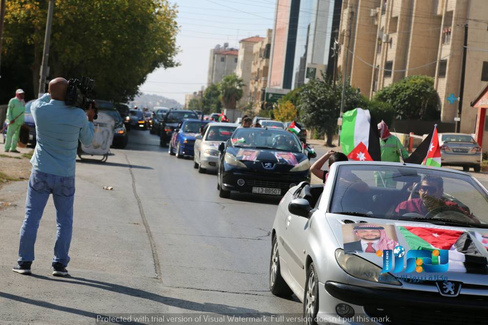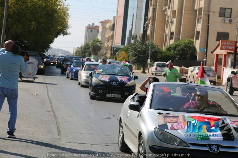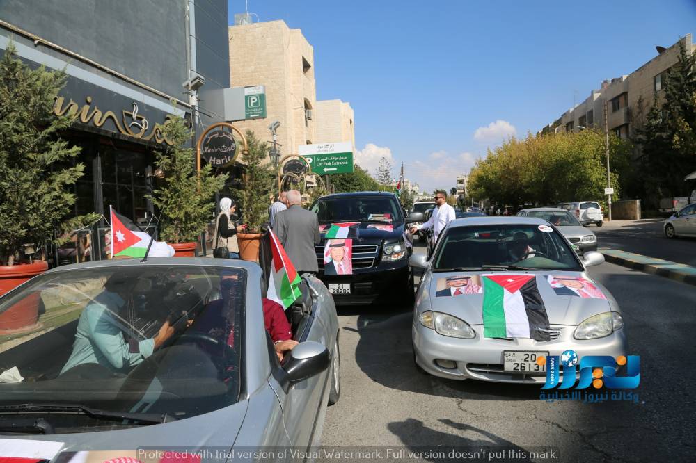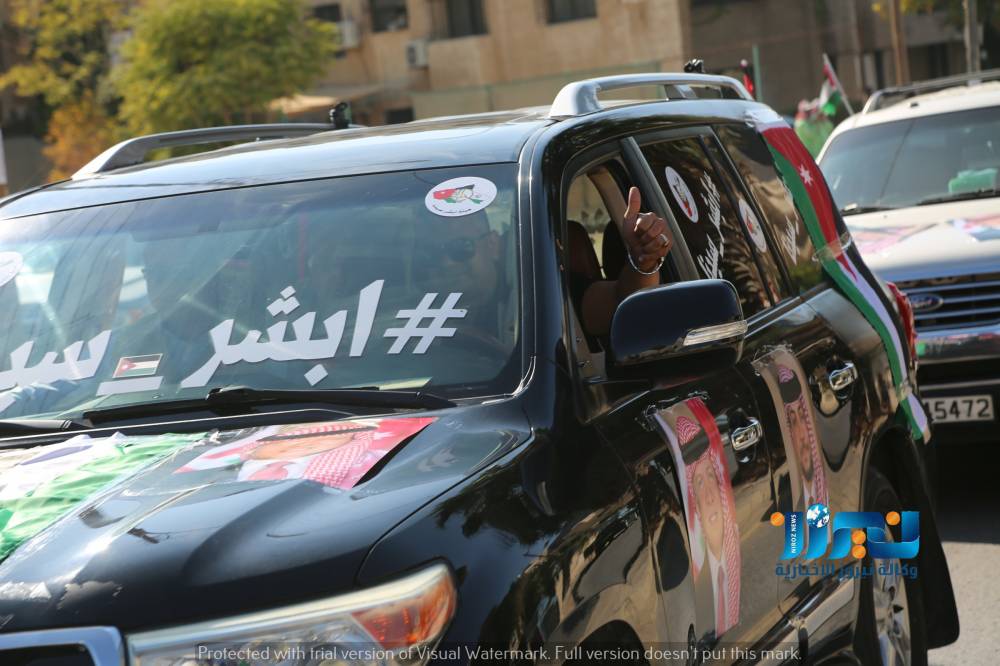 حيث انطلقت المبادرة بسيارات مزينه بإعلام الأردن وصور جلاله الملك بحوله ميدانية بمختلف مناطق العاصمه عمان شملت مرتبات السير والدوريات الخارجية.