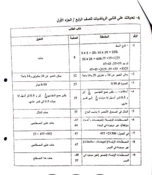 للصفين الأول والرابع، بتعديل وحذف وإضافة نحو 300 معلومة، وفق أمين عام
