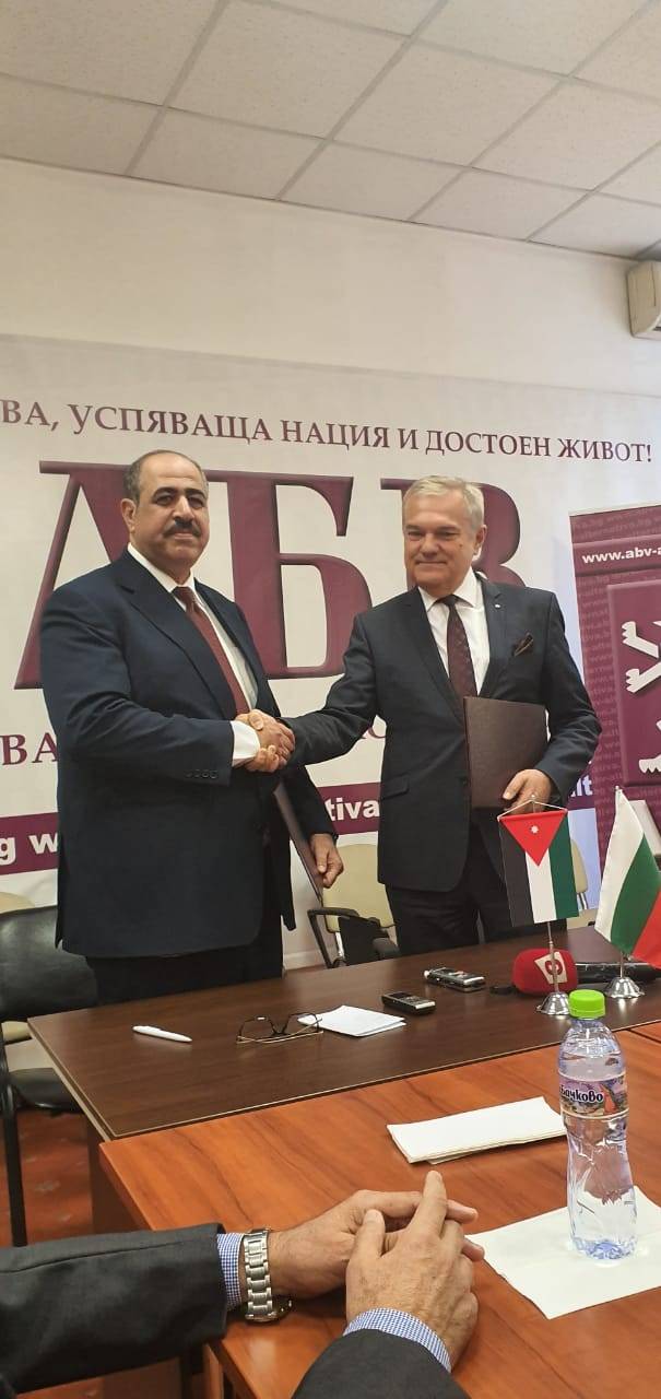 ومن جانبه اكد د. حسن البرماوى القنصل الفخرى فى بلغاريا أهمية هذه الاتفاقية فى دعم جسور التعاون المشترك ، والارتقاء بمستويات التنمية فى شتي المجالات ، من خلال دعم مسيرة التعاون البناء المشترك، كما واكد د. عبدالله المعانى رئيس الجالية الاردنية اهمية هذه الاتفاقية فى تعزيز مناخات التعاون والتشاركيه بين الشعب البلغارى والشعب الاردنى ، كما ثمن حابس المجالى دور حزب التغيير والنهضه احتضان الجاليات العربية وخصوصا الاردنية وادخالهم فى الحياة السياسية فى بلغاريا ..