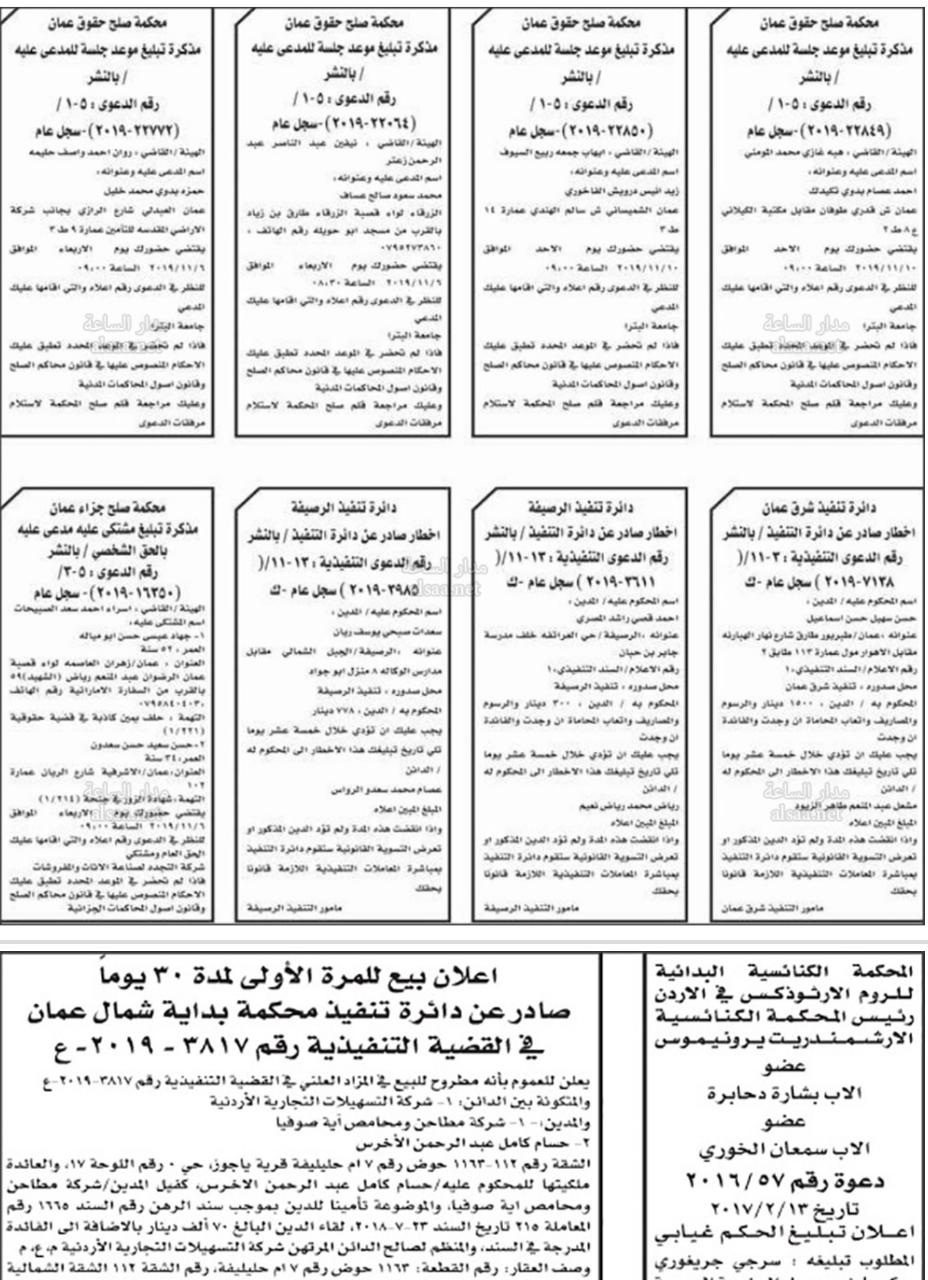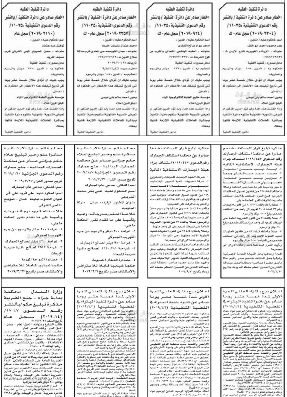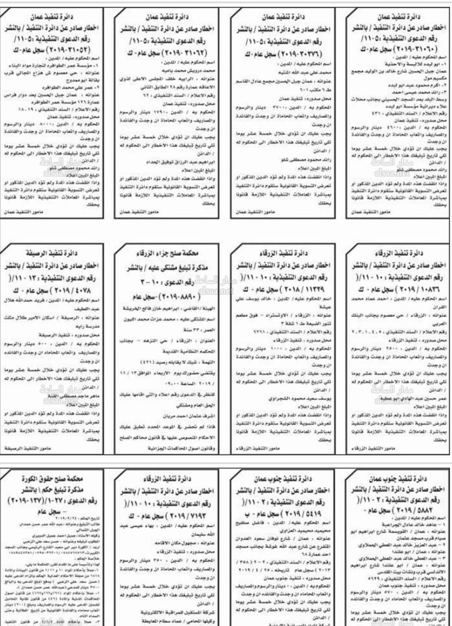 إقرأ أيضاً: تنفيذ قضائي وإنذارات ومواعيد جلسات محاكمة.. الأربعاء 30.10.2019 (أسماء)