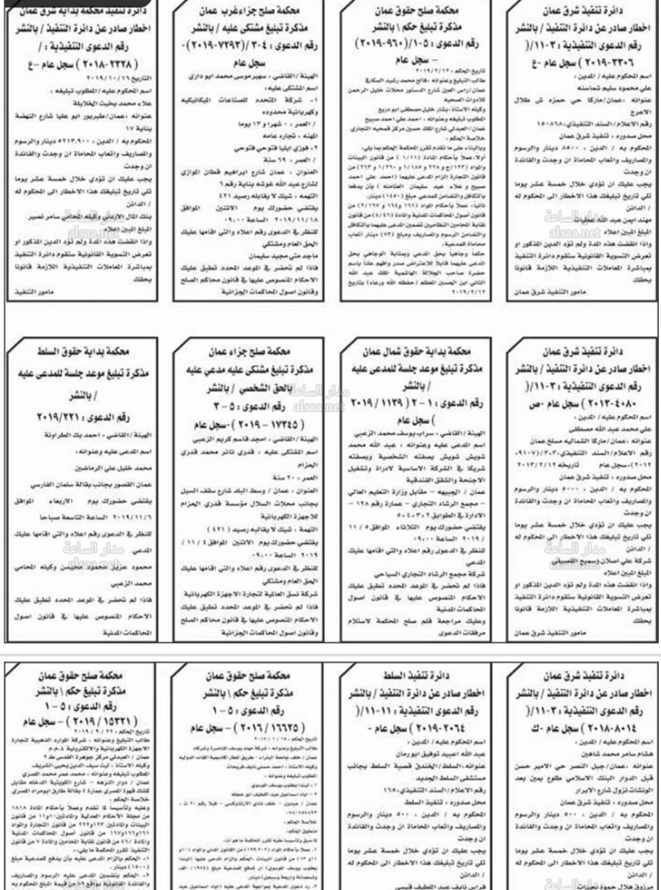 وتاليا اسماء كل ما ورد في الاعلى، مع الاشارة إلى أن "مدار الساعة" ستقوم يومياً بنشر مذكرات التبليغ والاخطارات: