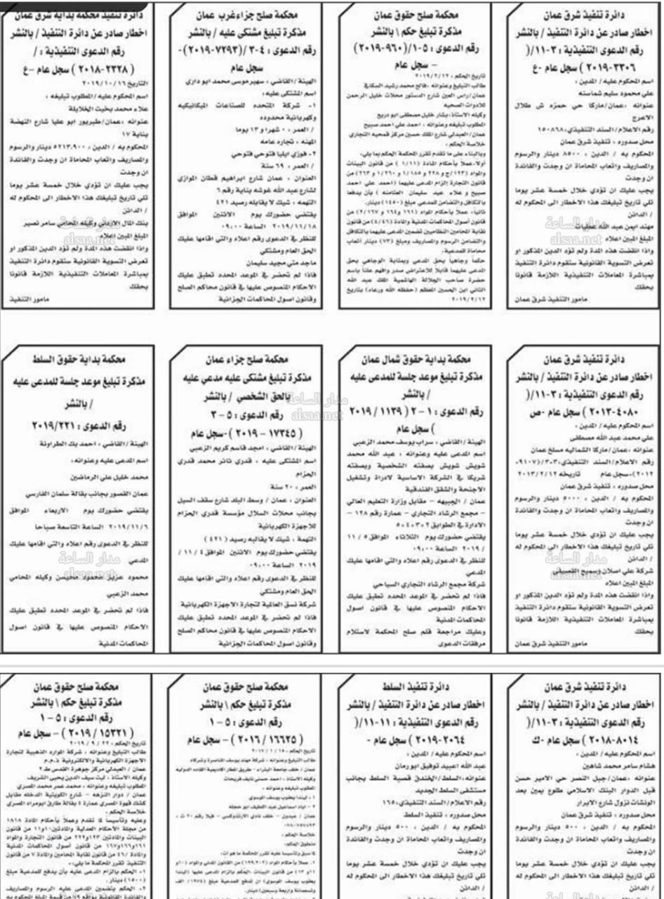 كما صدرت اخطارات عن دوائر التنفيذ في المحاكم.