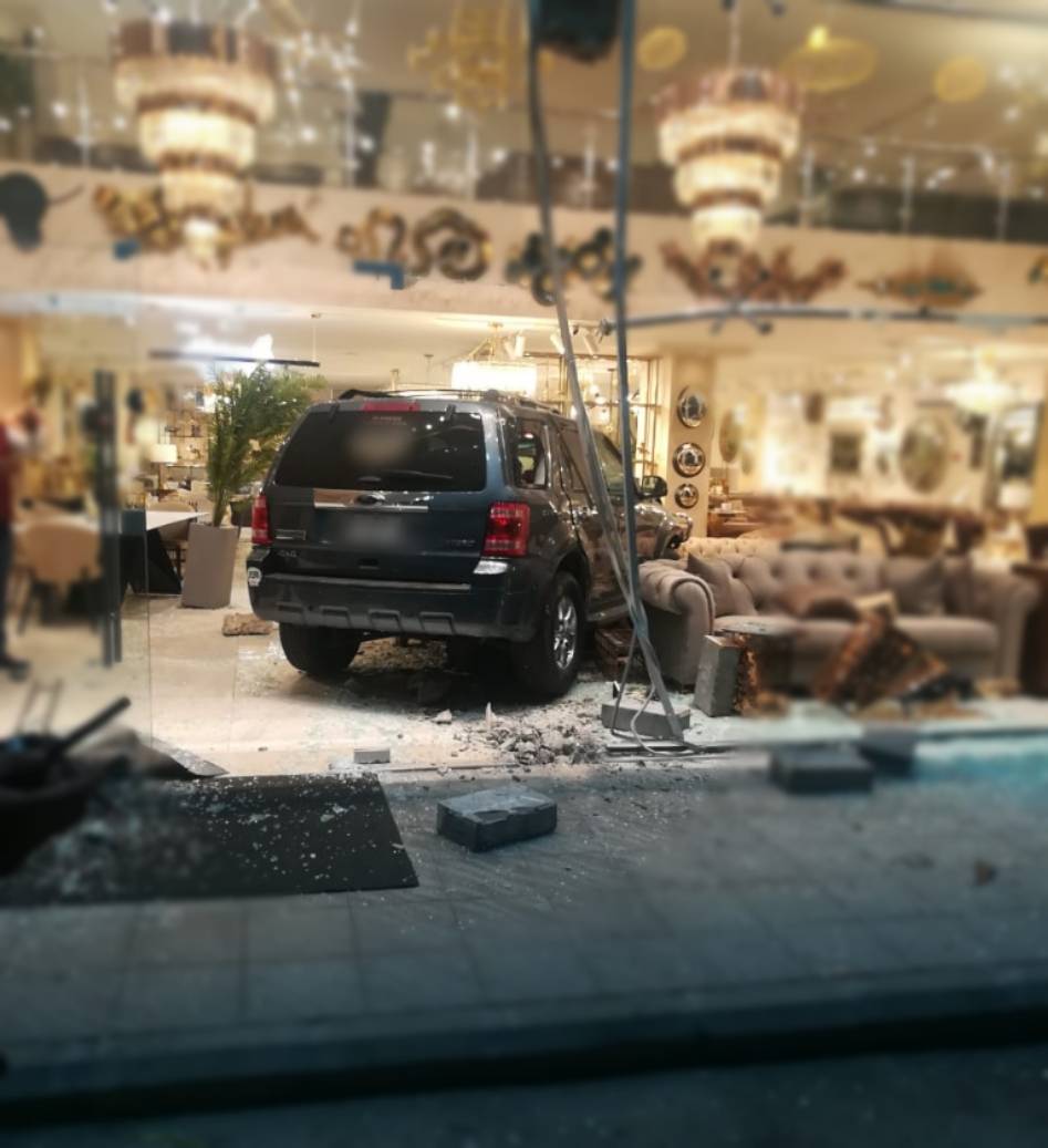 مركبة تقتحم معرضا للأثاث شمال عمّان...صور