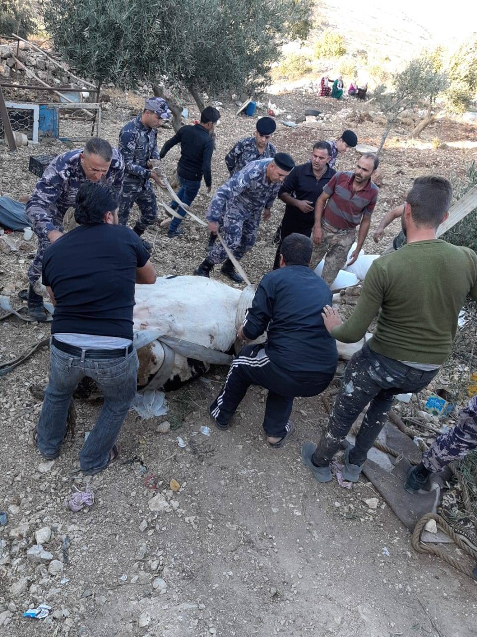 إنقاذ بقرة سقطت داخل حفرة في محافظة عجلون