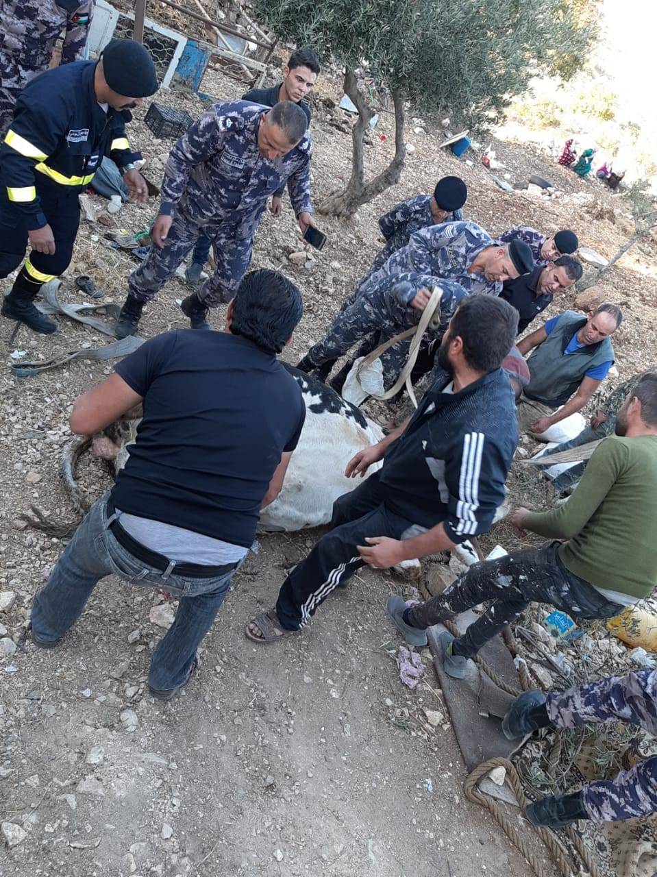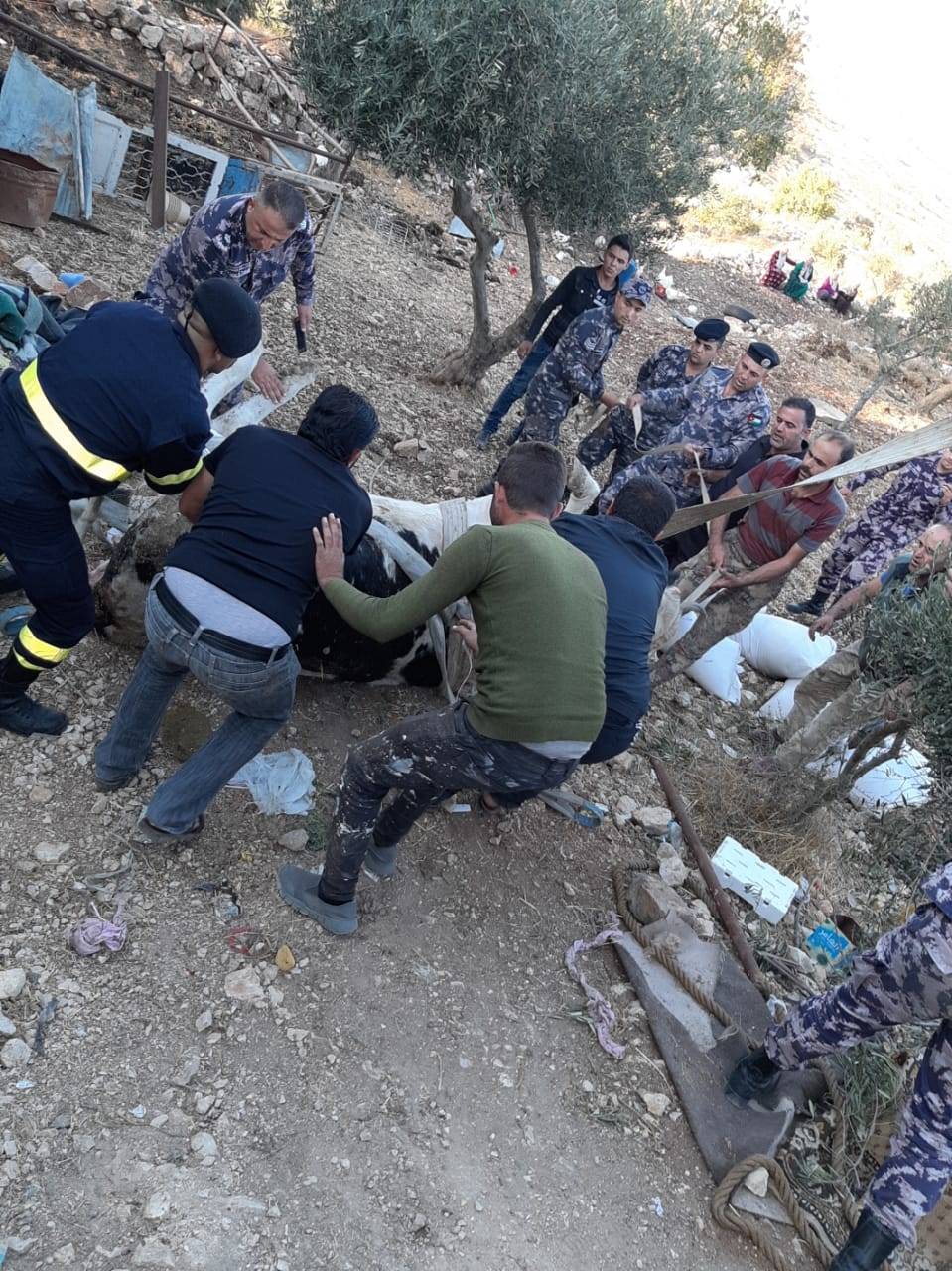 تمكنت كوادر الإنقاذ في مديرية دفاع مدني عجلون من إنقاذ بقرة سقطت داخل