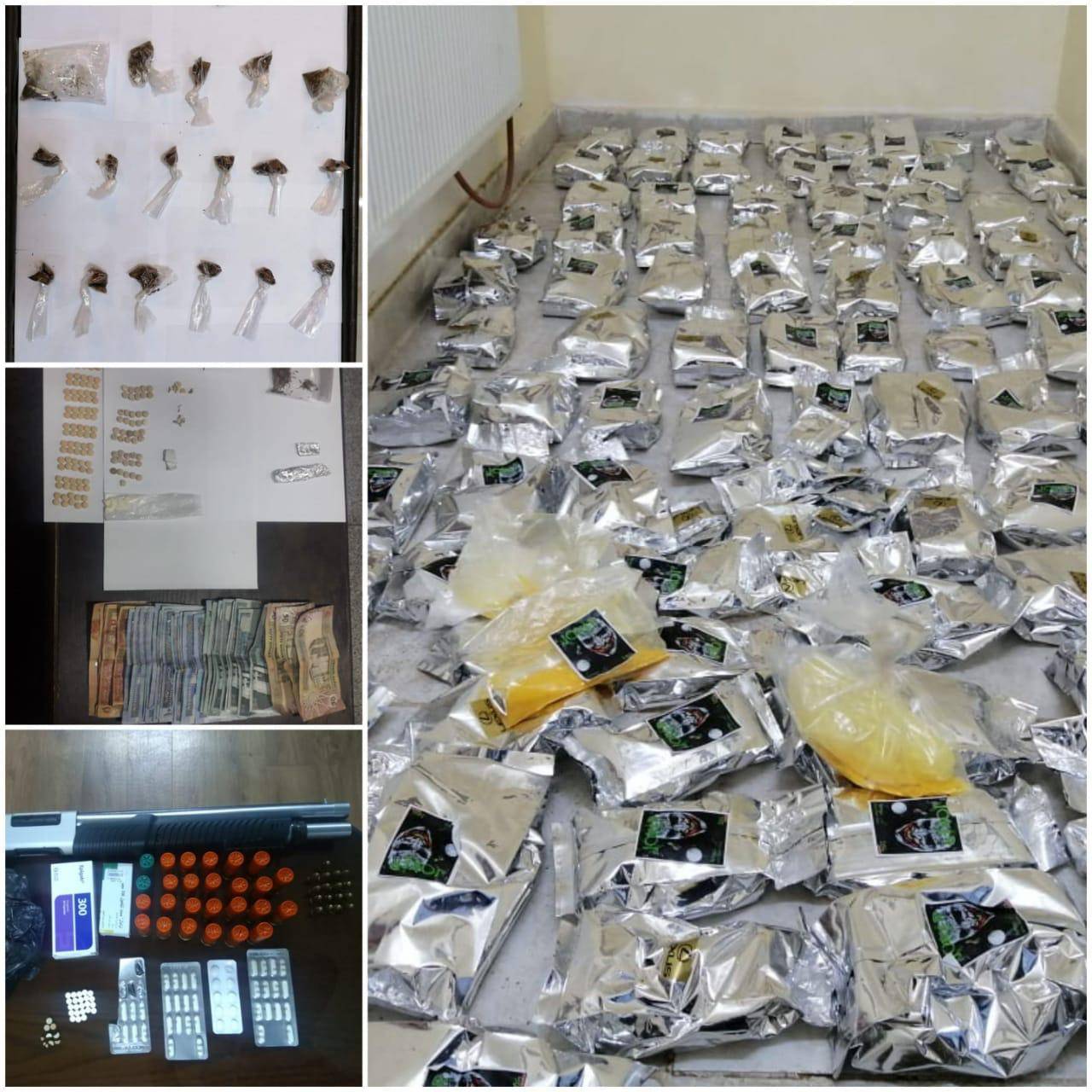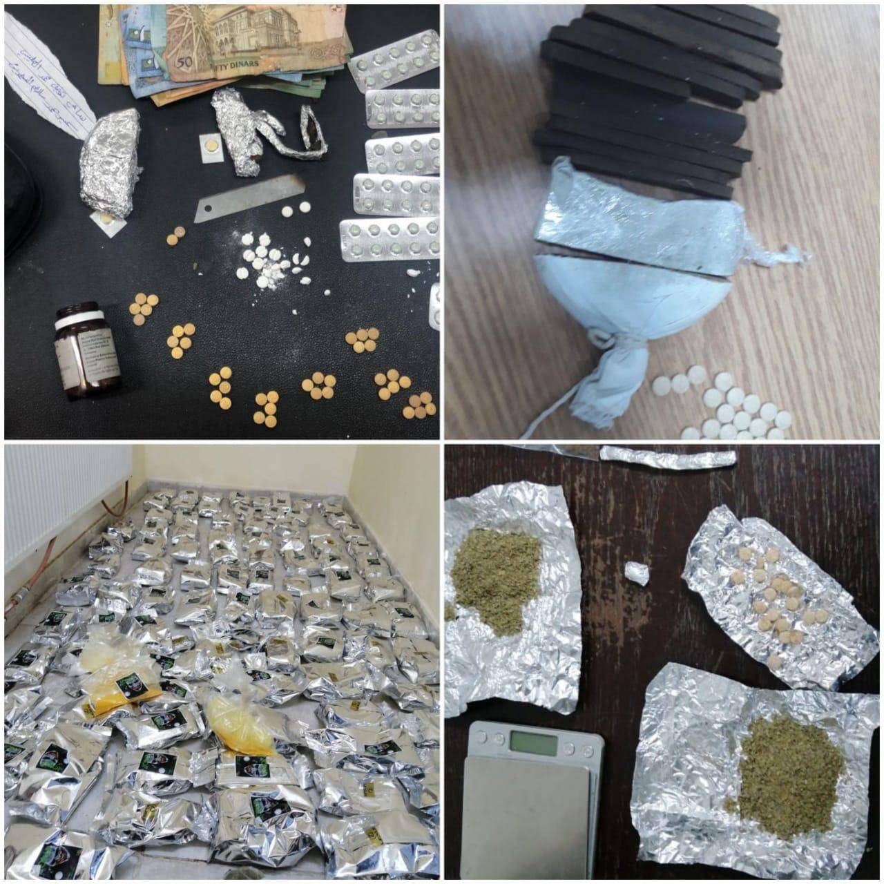 و تمكنت كوادر إدارة مكافحة المخدرات من إلقاء القبض على 9 أشخاص ضمن 4 قضايا منفصلة تم التعامل معها ضمن اختصاص محافظة الزرقاء و بحوزتهم كميات من المواد والحبوب المخدرة مختلفة الأنواع،  في حين ألقي القبض على 5 أشخاص ضمن اختصاص محافظة البلقاء ضمن 3 قضايا منفصلة و بحوزتهم كميات من المواد المخدرة، فيما ألقي القبض على شخص داخل مركبة في محافظة معان وبحوزته ما يقارب 200 حبة من حبوب الكبتاجون المخدرة و كمية من مادة الحشيش.