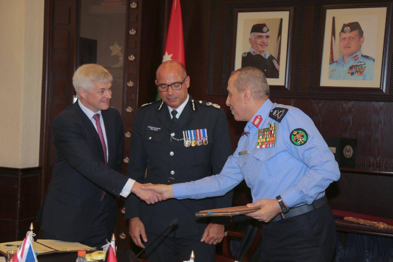 ووقع اللواء الحمود والسفير اوكدن مذكرة تفاهم بين مديرية الأمن العام ووزارة الخارجية البريطانية لتنظيم التعاون في المجالات التدريبية ونقل الخبرات وتبادلها بما ينسجم مع أهداف مديرية الأمن العام ويساهم في بناء وتطوير مهارات وقدرات منتسبي مديرية الأمن العام.