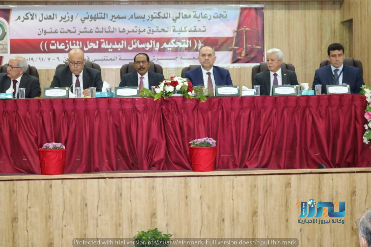واضاف خلال افتتاحه اليوم الاربعاء أعمال المؤتمر العلمي الثالث عشر لكلية الحقوق في جامعة جرش  الذي جاء تحت عنوان "التحكيم والوسائل البديلة لحل المنازعات" على مدار يومين ان هذا المؤتمر يستعرض موضوع في غاية الاهمية الا وهو التحكيم والوسائل البديلة لحل المنازعات مما يوفر المرونة في الزمان والمكان من خلال ايجاد البدائل المناسبة للقضاء بصورته التقليدية مراعيا حق الافراد في اللجوء للقضاء واقتضاء الحقوق بعدالة ووفق احكام القانون وفي نفس الووقت توفير درجة من المرونة والفاعلية والكفاءة .