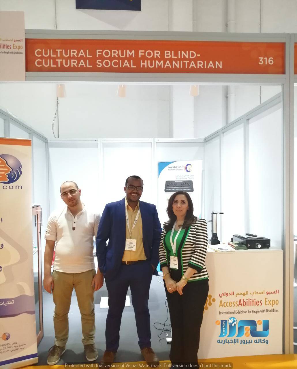 وقامت بوحميد بجولة في المعرض، تفقدت خلالها أجنحة الجهات الحكومية والشركات الخاصة والجمعيات المشاركة  من الدول العربية  حيث اطلعت على أفضل التقنيات الحديثة والحلول الذكية التي تسهم في تسهيل حياة أصحاب الهمم، وتمكينهم من الاعتماد على أنفسهم وشارك الملتقي الثقافي للمكفوفين في جناح عرض فيه تجربة الاردن في تقديم الخدمات والبرامج والدورات التدريبية لذوي الإعاقة البصرية واستخدامات المكفوفين لأحدث أساليب التكنولوجيا التي تساعدهم في التعليم ومواقع العمل وذلك بالتعاون مع شركة الناطق وأكدت الانسة سهير عبدالقادر علي اهمية المشاركة في المعارض الدولية لاكتساب الخبرات والإطلاع علي التجارب العالمية في تقديم ألخدمات لذوي الإعاقة وأكدت علي أن دور الاردن موازيا لتجارب الدول الصديقة حيث قام الملتقى الثقافي للمكفوفين ولاول مرة بالشرق الاوسط بتنفيذ المشروع البيئي التعليمي السياحي لذوي الإعاقة البصرية لتدريب مجموعة من الأدلاء السياحين المكفوفين لتعريف الزوار علي الاماكن الأثرية والسياحية من خلال معرض حي يضم أبرز المناطق وتنوعها الحيوي والسياحي للتوعية باهمية السياحة البيئية بالاردن