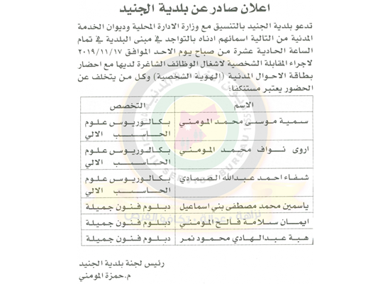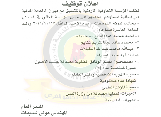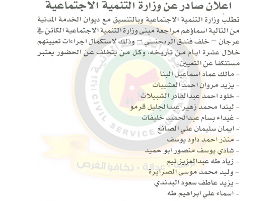 نيروز الاخبارية :- دعا ديوان الخدمة المدنية بالتعاون مع مختلف الوزارات والمؤسسات الحكومية، التالية اسماؤهم لاجراء المقابلات الشخصية وعقد الامتحان التنافسي لغايات التعيين.