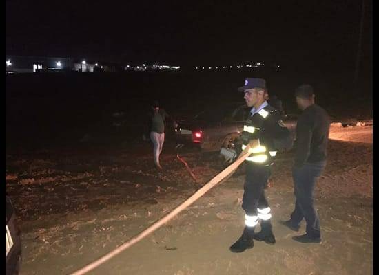 وعلى الفور استجاب طاقم الدورية بكل صدر رحب لمناشدة السائق وتم التوجه للمكان والقيام بسحب السيارة من الوحل .