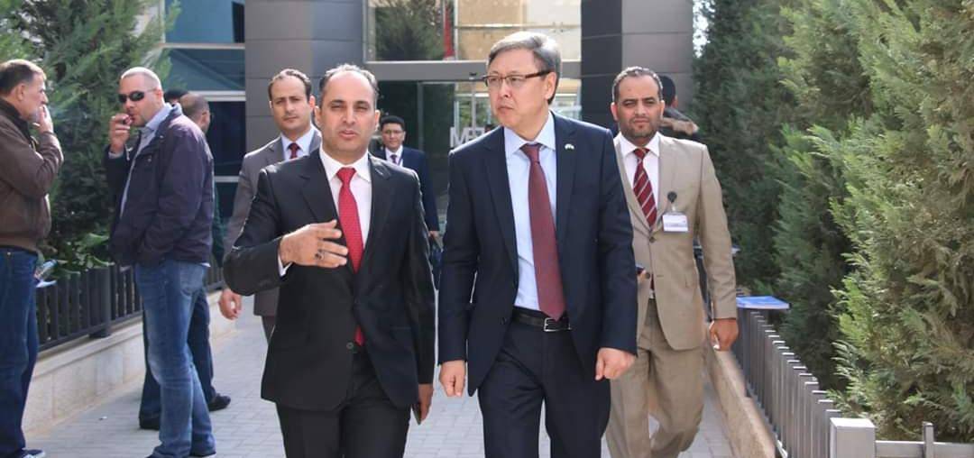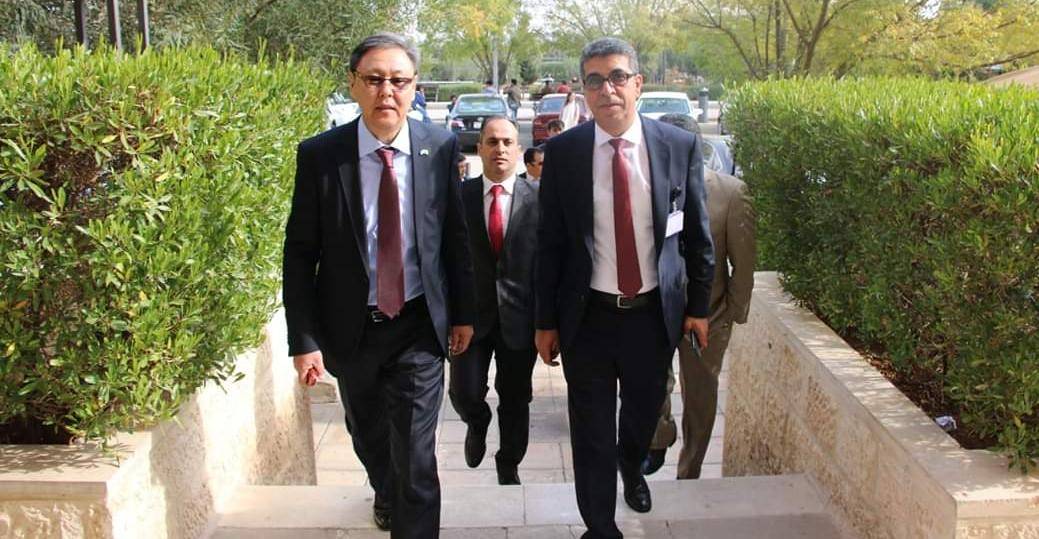 AMMAN - The Human Rights Center at Middle East University’s Faculty of Law organised a lecture given by the Kazakhstani Ambassador to Jordan, Mr. Aidarbek Toumatov, where he discussed the history of Kazakhstan and its relationship with Jordan. This lecture was attended by Dr. Yacoub Nasereddin, the Chairman of the Board of Trustees.