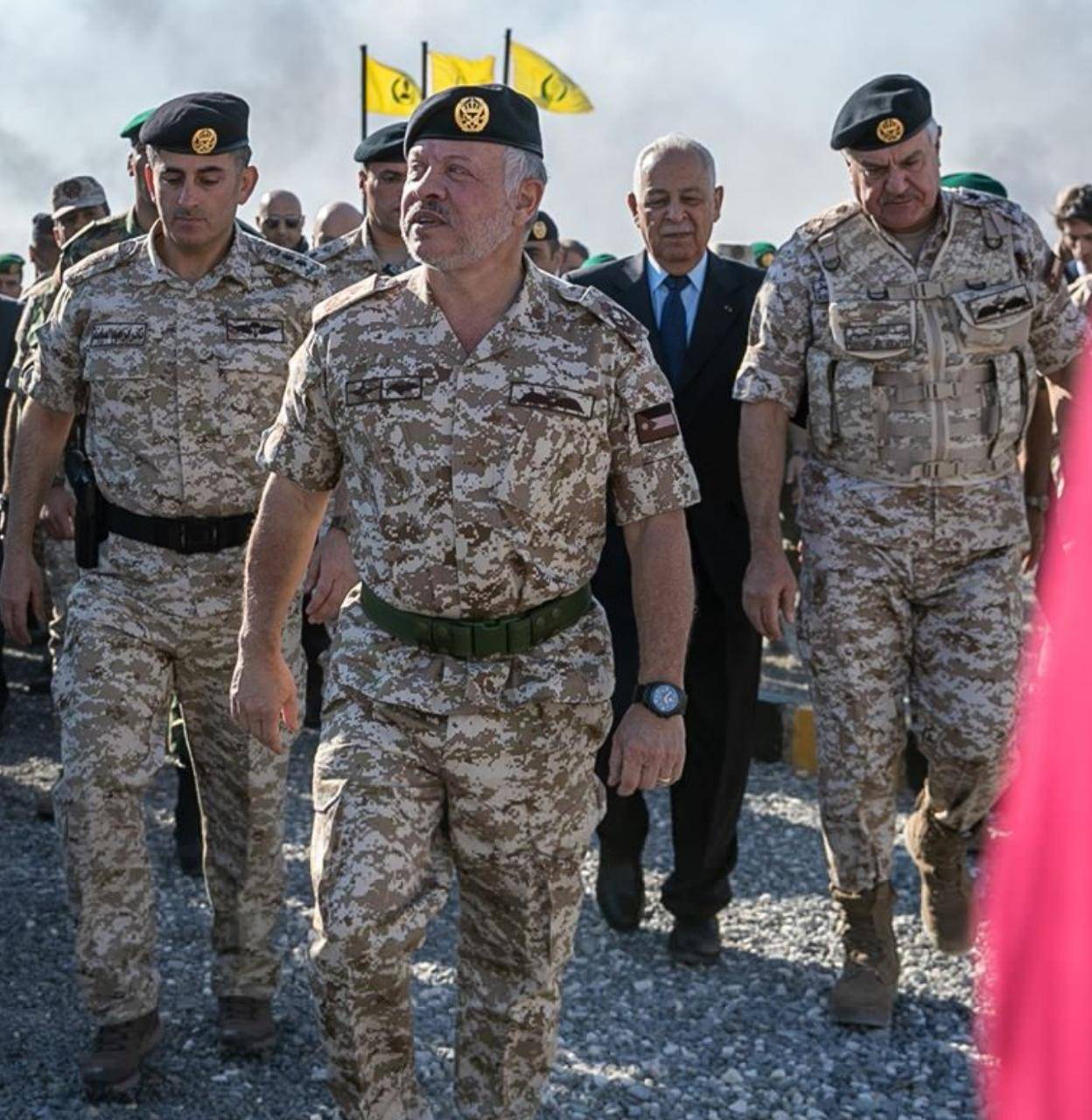وقال إن المرحلة القادمة ستشهد زخما في الإعداد والتدريب المشترك وتعزيز مقومات الجيش ورفع كفاءته وتزويده بأحدث الأسلحة والمعدات، والتركيز على تأهيل منتسبيه، ليكون بأعلى درجات الجاهزية لمواجهة تحديات ومتغيرات المرحلة، ومستعدا للذود عن هذا الحمى العربي الهاشمي الأصيل، والضرب بيد من حديد كل من تسول له نفسه المساس بأمن الوطن من عصابات التطرف والإرهاب.