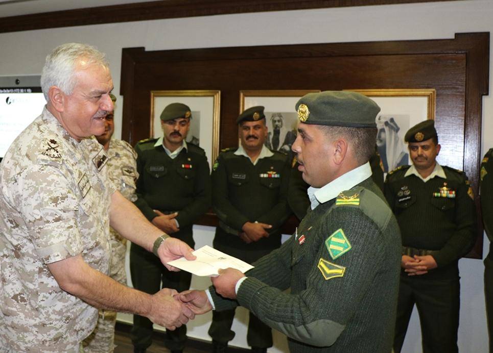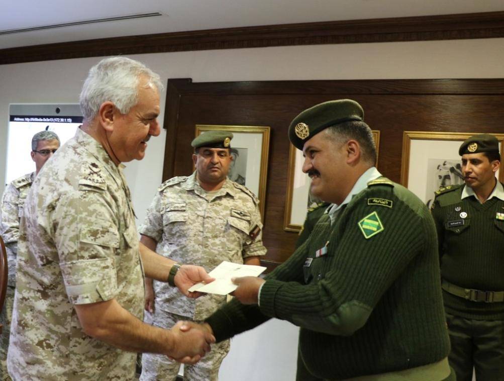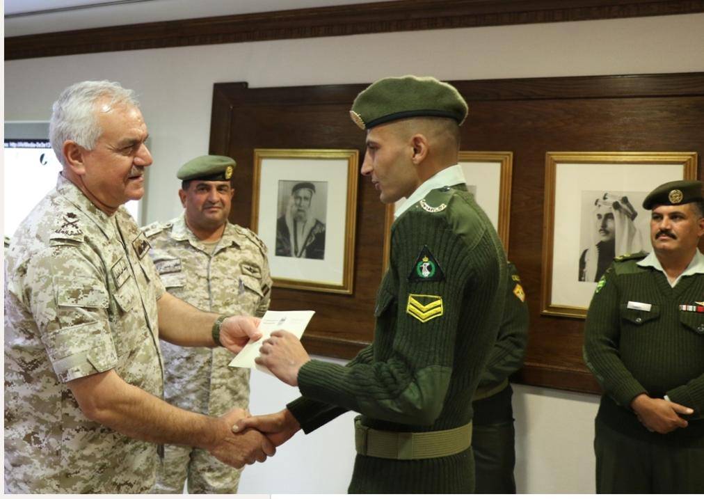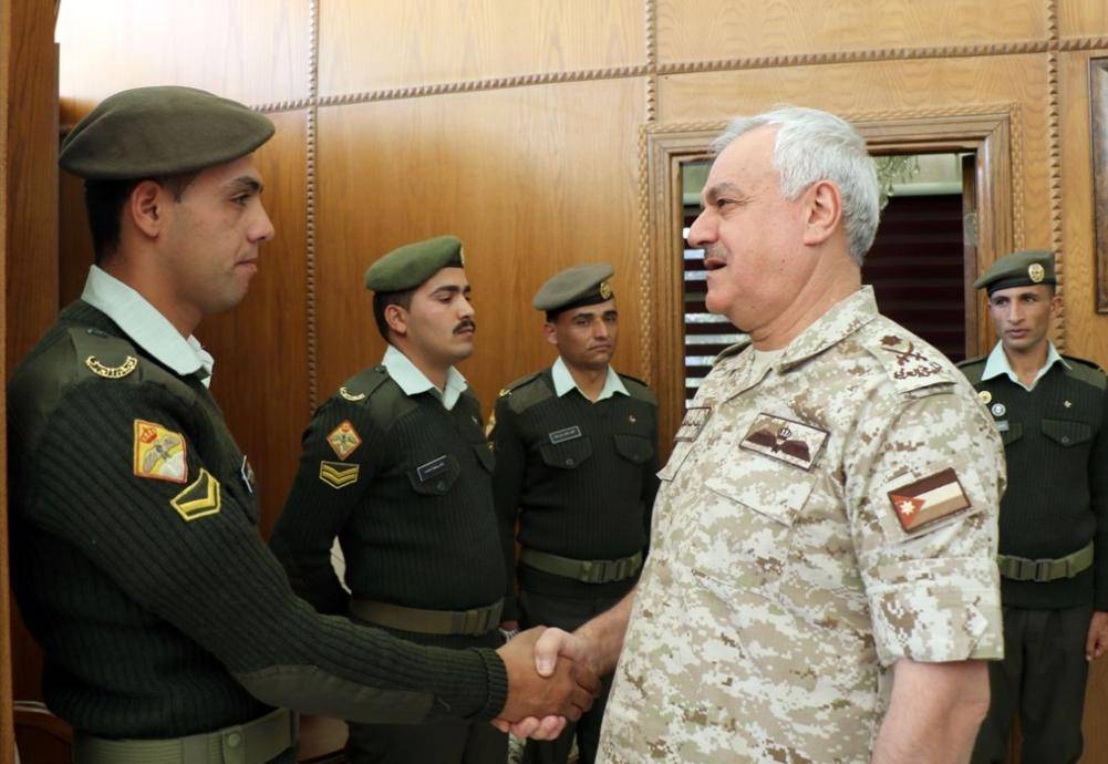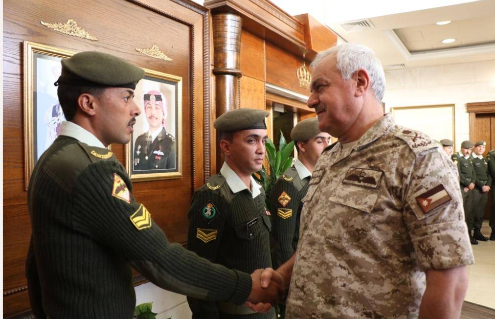 نيروز الاخبارية :- كرم رئيس هيئة الأركان المشتركة اللواء الركن يوسف أحمد الحنيطي في مكتبه بالقيادة العامة، اليوم الأربعاء، مجموعة من ضباط صف وحدات حرس الحدود التابعة للمنطقة العسكرية الشمالية ممن أحبطوا عملية تهريب كمية كبيرة من المخدرات على الواجهة الشمالية خلال الأسبوع الماضي.