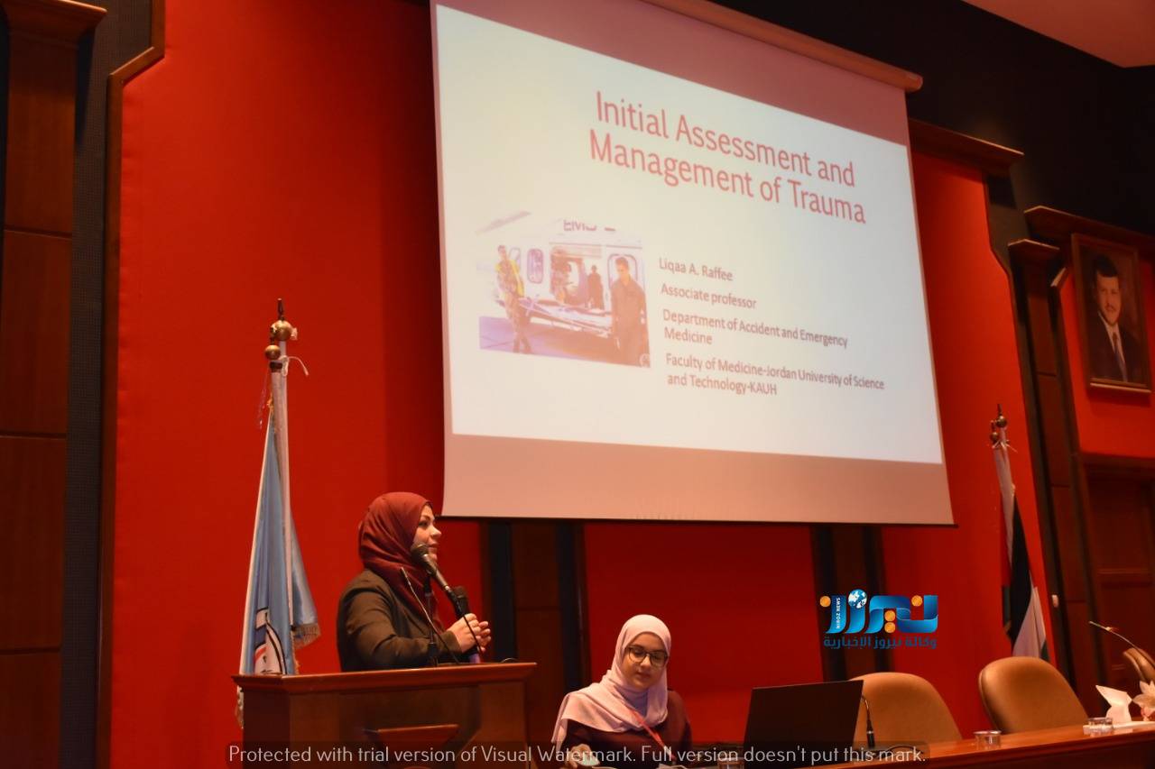كما قام  الدكتور بلال الرشدان والدكتور عبد الهادي علوه من قسم الطوارى في المستشفى  بشرح وتدريب سريري للطلبة المشاركين  على كيفية التعامل الصحيح مع حوادث السير في الشارع العام وحال وصول المريض الى قسم الطوارىء , وشارك الدكتور علاء بلعاوي بعض التجارب  التي تعاملو معها في المستشفى من خلال محاضرة وشرح تفصيلي عن كيفية وضع الاولويات للتعامل مع كافة الاصابات حال وصولها الى المستشفى وأفضل الطرق والاساليب  التي تحافظ على تنفس المريض في محاولة لتجنب الاخطاء الناجمة عند إسعاف أي مصاب .