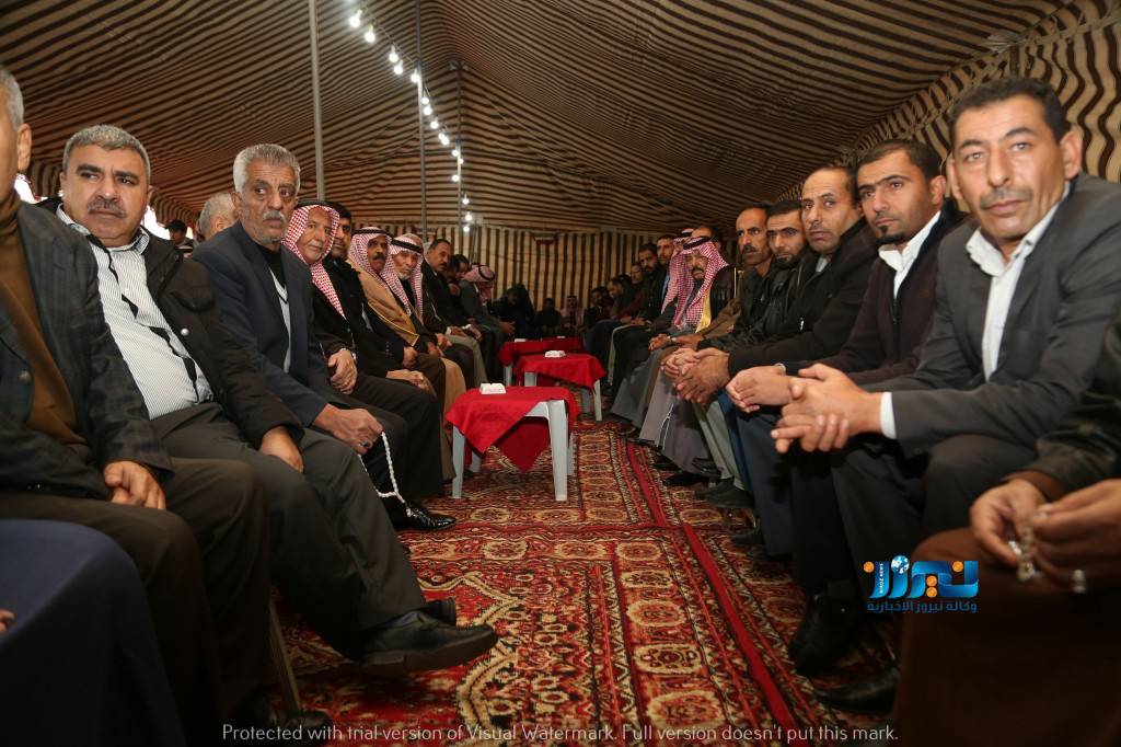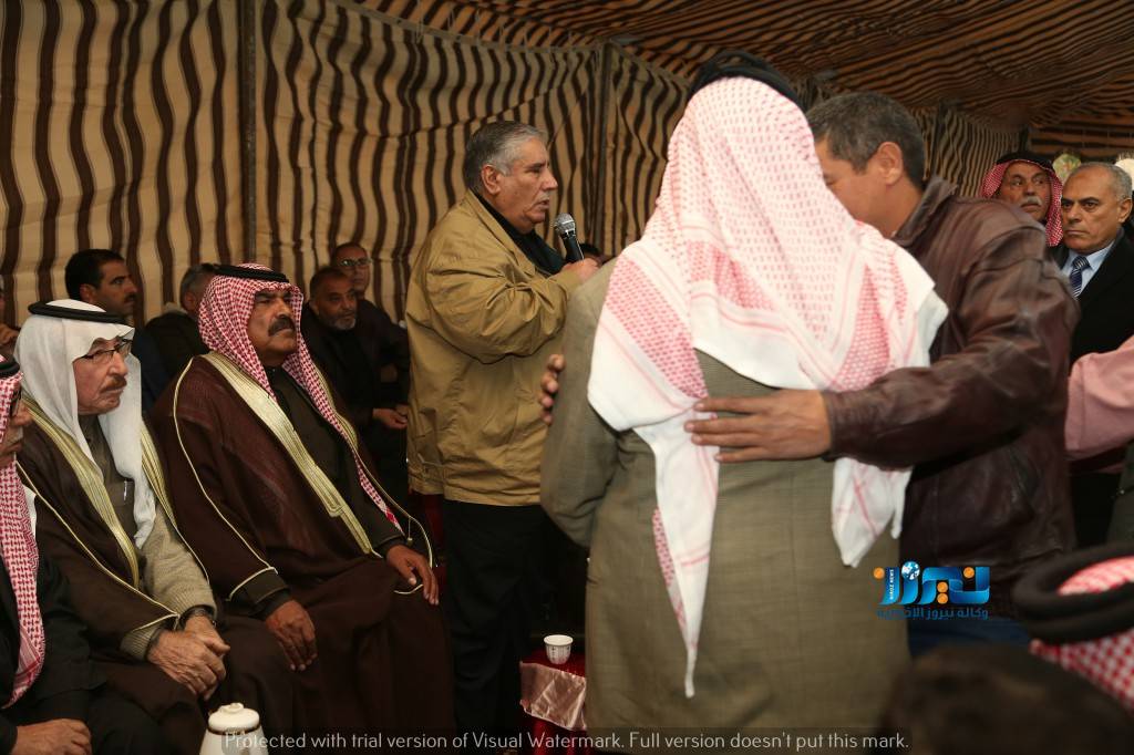 نيروز الإخبارية : توجهت جاهة عشائرية من شيوخ ووجهاء قبيلة العجارمة وفي مقدمتهم الشيخ يوسف الشهوان الى مضارب عشائر عباد بمنطقة بيادر وادي السير بالعاصمة عمان على اثر مقتل الشاب برجس صالح المناصير
