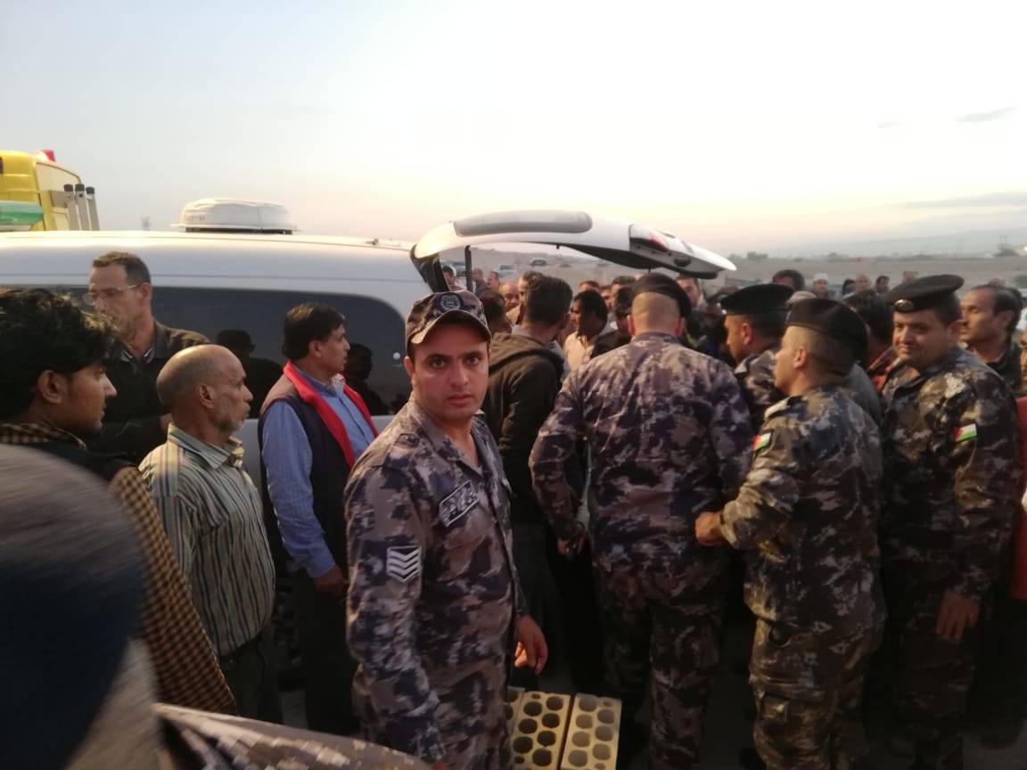 وشارك عدد كبير من مرتبات الدفاع المدني بتشييع الجثامين مع عدد من المواطنين الأردنيين والجالية الباكستانية .