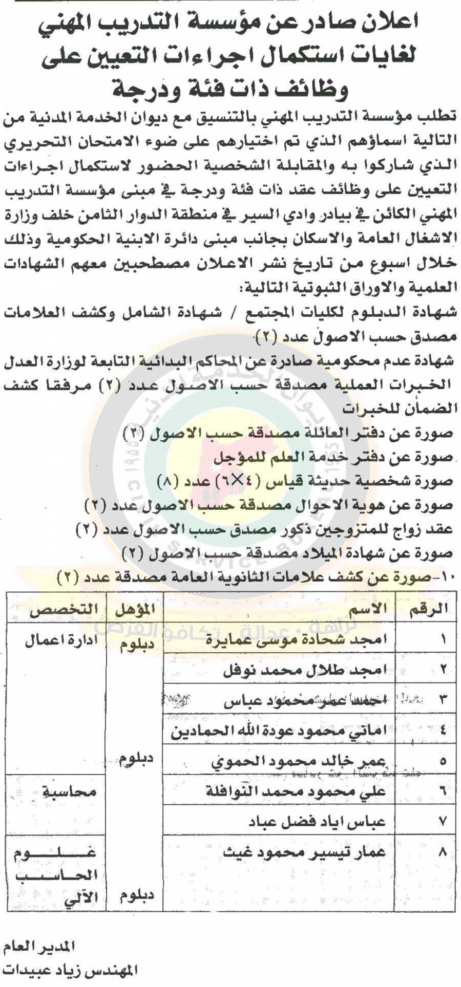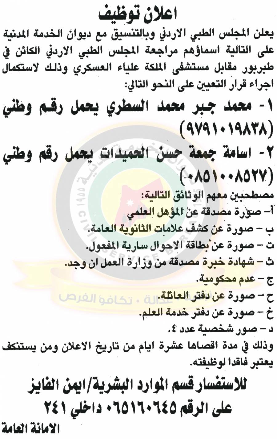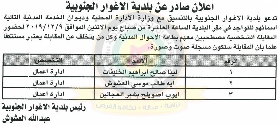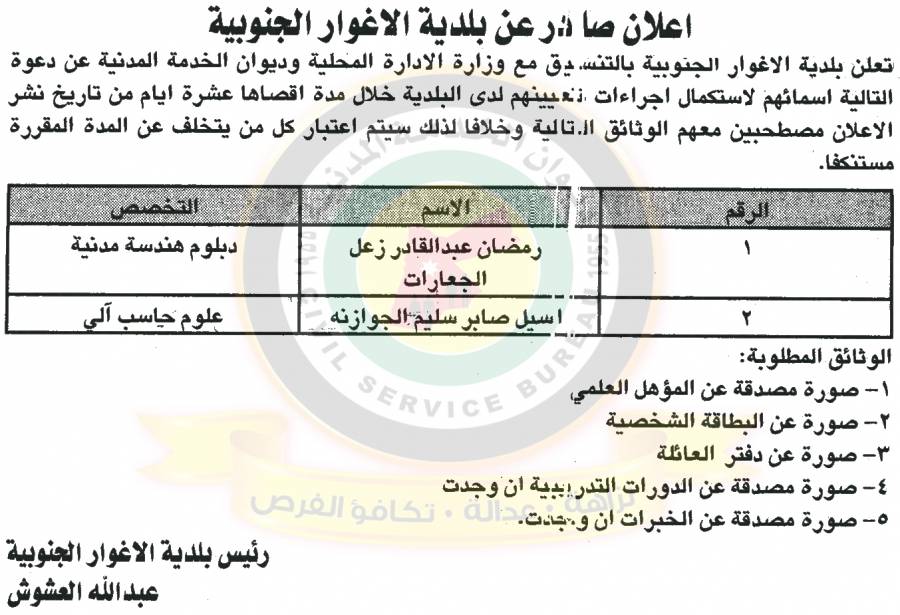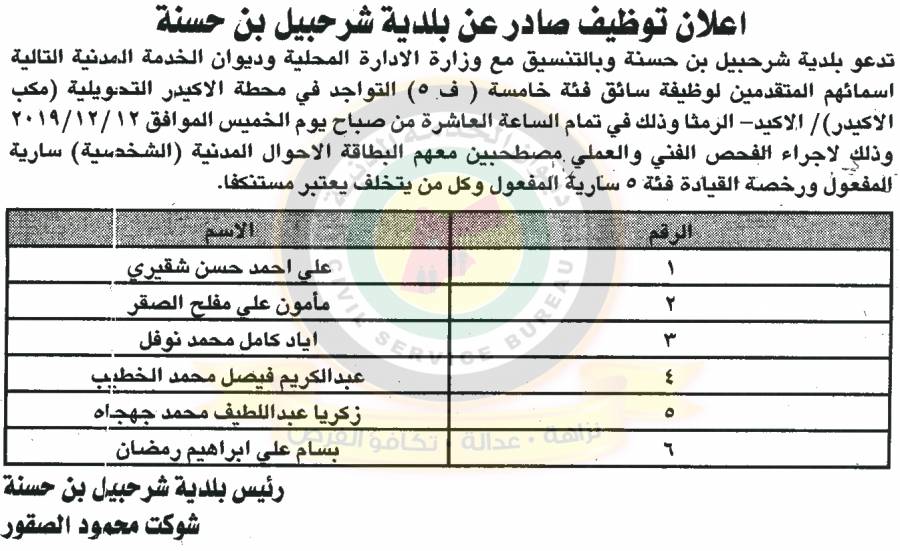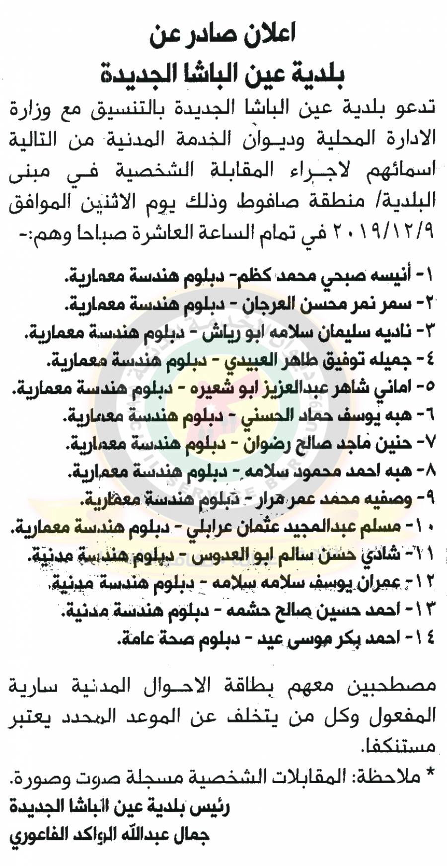 نيروز الاخبارية: دعا ديوان الخدمة المدنية بالتعاون مع مختلف الوزارات والمؤسسات الحكومية، التالية اسماؤهم لاجراء المقابلات الشخصية وعقد الامتحان التنافسي لغايات التعيين.