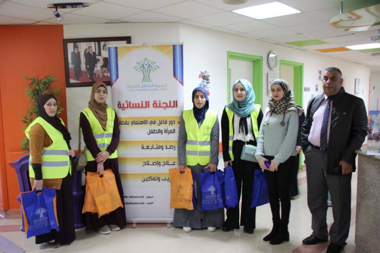 اللجنة النسائية بجمعية التكافل تزور مرضى السرطان بمستشفى الملك المؤسس .