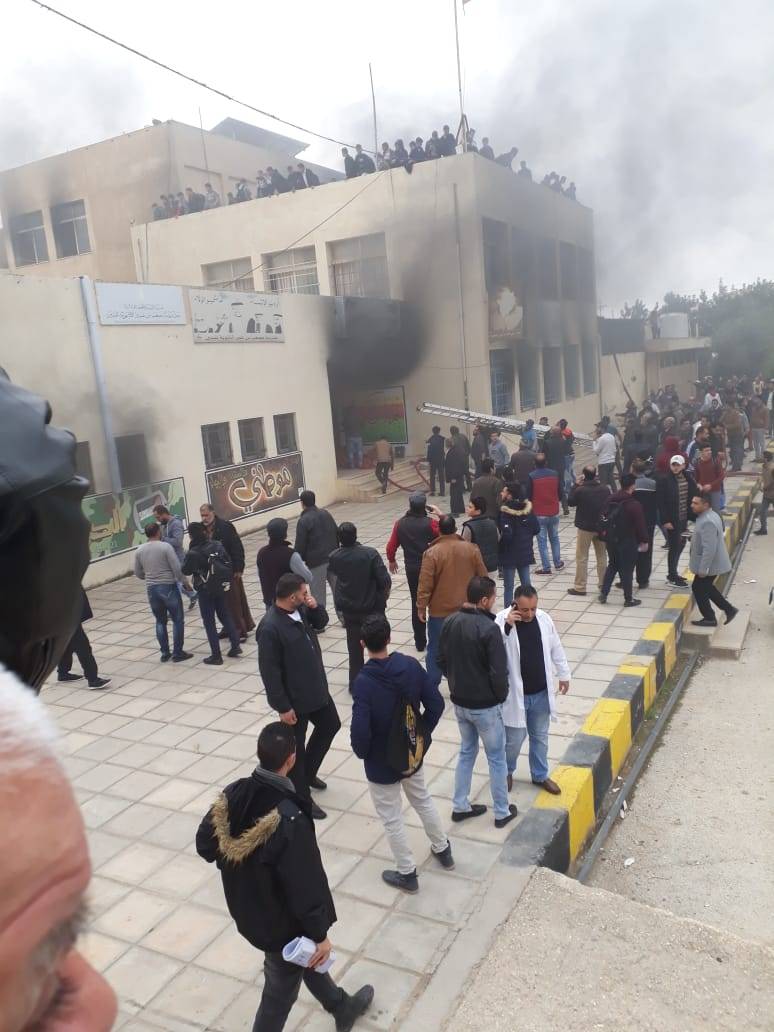 مدير التربية مازن المومني رفض إعطاء أي معلومات مكتفيا لا يوجد اصابات فيما أكد معلم أنه شاهد اغماء عدد من الطلبة والمعلمين بسبب الدخان الكثيف