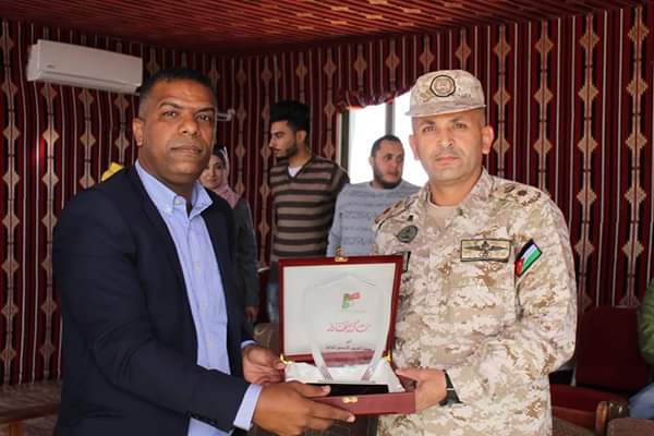 من جانبه، اشاد منسق هيئة شباب كلنا الأردن في العقبــــــة الدكتور عمر العشوش، بموقف جلالة الملك عبدالله الثاني الذي أمر الحكومة ووجهها للمضي بالإجراءات القانونية لإنهاء العمل بملحقي الباقورة والغمر واستعادة الأراضي الأردنية، مؤكدا على ضرورة وضع خطة شاملة لتطوير المنطقة في شتى المجالات التنموية، كما عبر عن شكره وتقديره لدور القوات المسلحة في حماية الوطن. وقدم الوفد على هامش الزيارة درع تكريمي لقيادة مجموعة حرس الحدود.