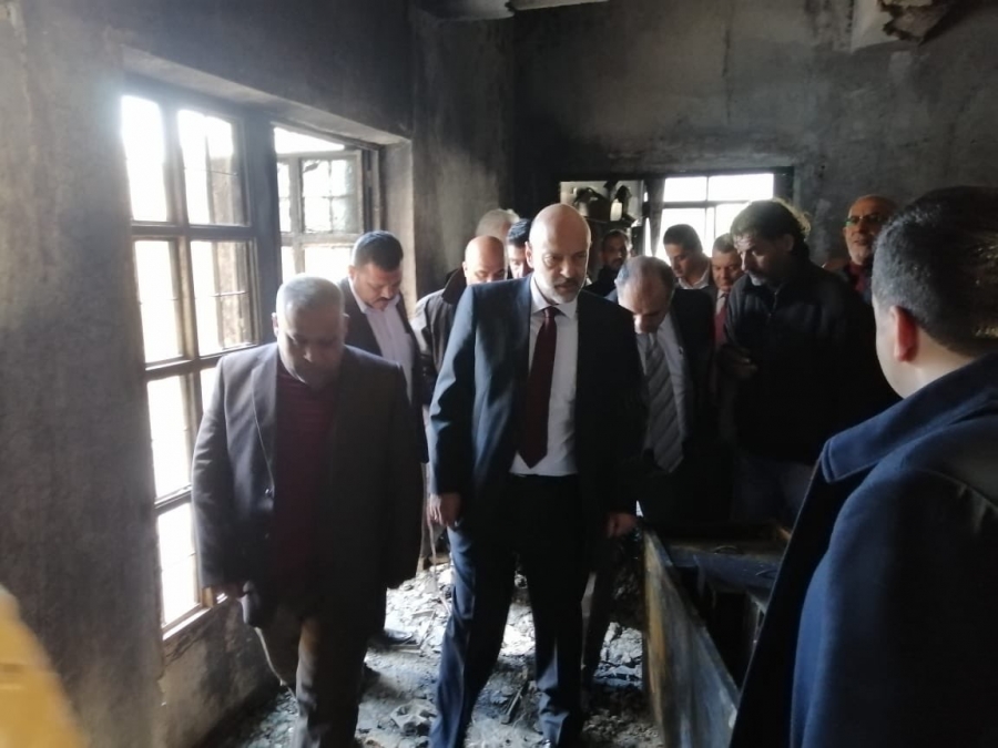 بالصور .. الرزاز في مدرسة مصعب بن عمير بالرمثا بعد تعرضها للحريق