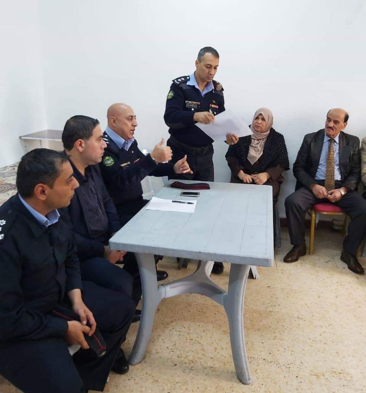 حيث تم التأكيد على دور أعضاء المجلس الأمني بالتواصل مع المركز الأمني والشرطة المجتمعية كوّن المواطن شريك بالعملية الأمنية وأن الأمن مسؤولية الجميع والتعاون المستمر لما لهم من دور ايجابي في المجتمع من خلال التشاركية بالعمل في جميع المجالات وحل بعض القضايا والمشكلات وتم مناقشة بعض الظواهر السلبية في المنطقة ،كما وتم الحديث حول الحوادث المرورية وأثارها السلبية على الأسرة والمجتمع نتيجة عدم التقيد بقواعد وأولويات المرور ، وظاهرتي إطلاق العيارات النارية وآفة المخدرات وآثارهما السلبية على الوطن والمواطن وطرق الوقاية وكيفية الإبلاغ عن الفاعلين وعدم التوسط لهم وترك الأمر للقضاء.
